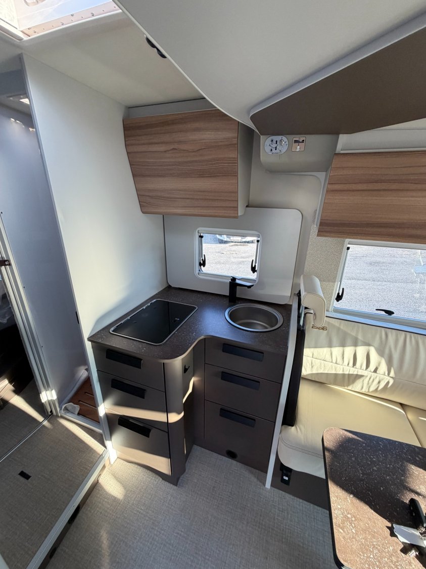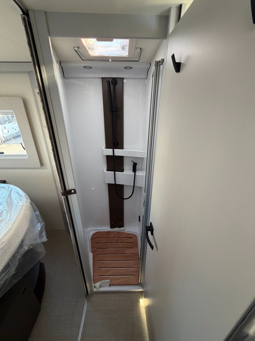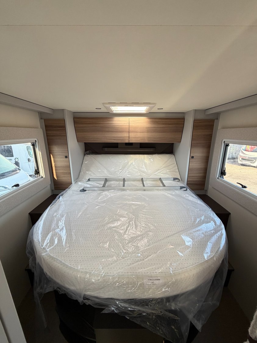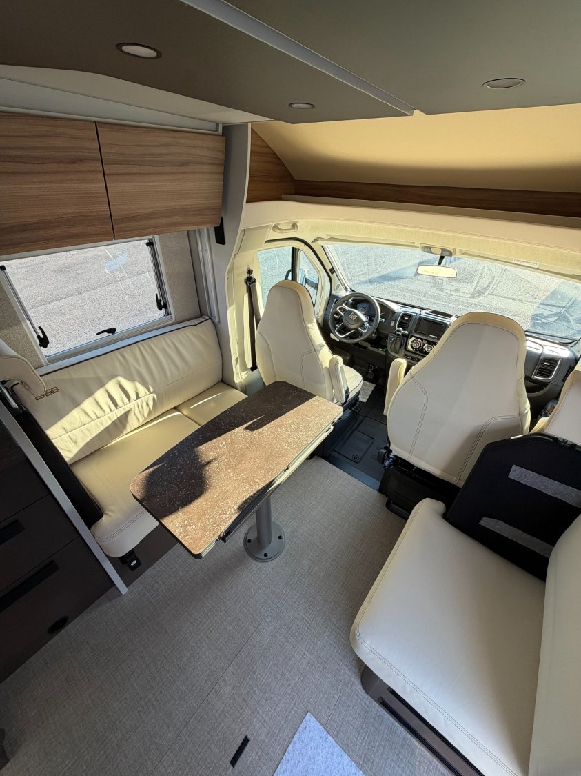 Airbag conducteur et passager, Rétroviseurs bras large, Start & Stop, Traction + avec fonction Hill Descent Control, Habillage des sièges cabine assorti à la cellule, Sièges cabine pivotants, Stores plissés occultants cabine, Climatisation manuelle en cabine, Porte-gobelets, Batterie lithium 100 Ah, Alternateur avec fonction booster 25A, Marchepied électrique, Marchepieds cabine, Tableau de bord Techno (application aluminium), Volant et pommeau de levier de vitesse gainés cuir, Marchepied cellule encastré, Rétroviseurs électriques et dégivrants, Station multimédia avec caméra de recul, Réfrigérateur à compresseur, 131,5 L (dont 15 L de congélati, ***********, Lit central réglable en hauteur (+/- 25 cm), Coffre à gaz pour 2 X11KG, Collecteur de déchets et verrouillage centralisé, ABS (système antiblocage des roues), Alternateur renforcé (220 Ah), Capteur de pression, Châssis Fiat à voie arrière élargie, Feux antibrouillard avant, Feux de jour, Fix and Go Kit (à la place de la roue de secours, Frein à main électrique, Jantes aluminium 16'' Bi-Color, Pare-chocs avant couleur carrosserie, Plancher isolé en XPS avec soubassement en polyester, Combiné chauffage / chauffe-eau Combi 6, Porte d'entrée version large avec fenêtre, moustiquaire, Pneus 4 saisons, Ressorts à lames composites, Régulateur de vitesse avec limiteur de vitesse, Réservoir diesel 60 litres, Peinture extérieure Gris Lanzarote (cabine)