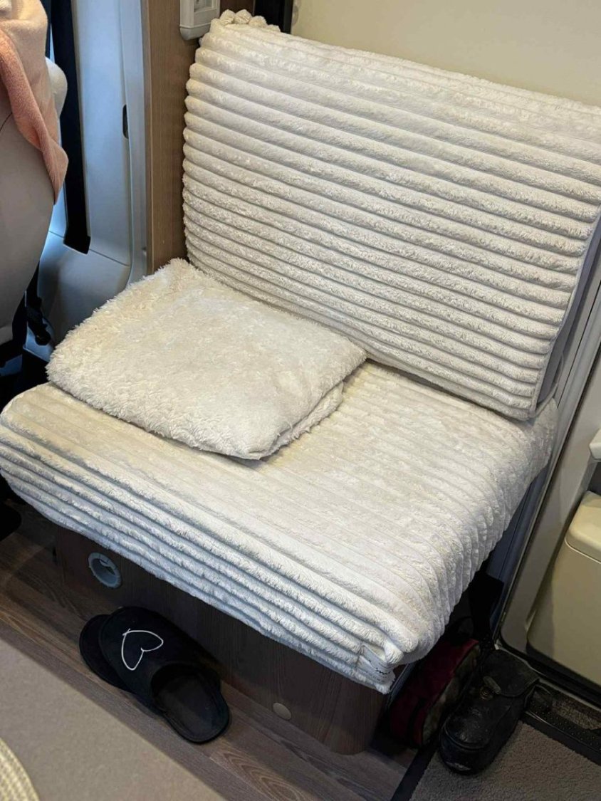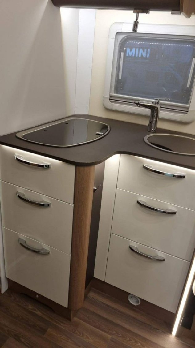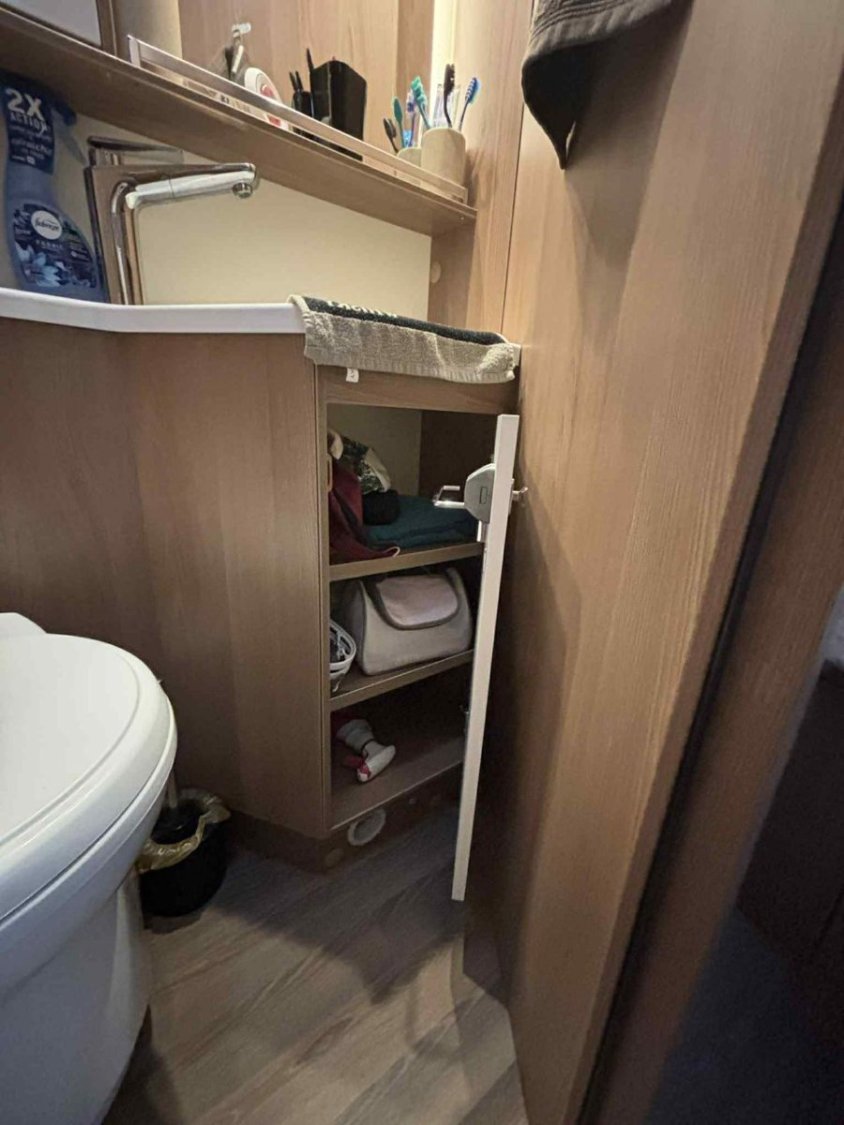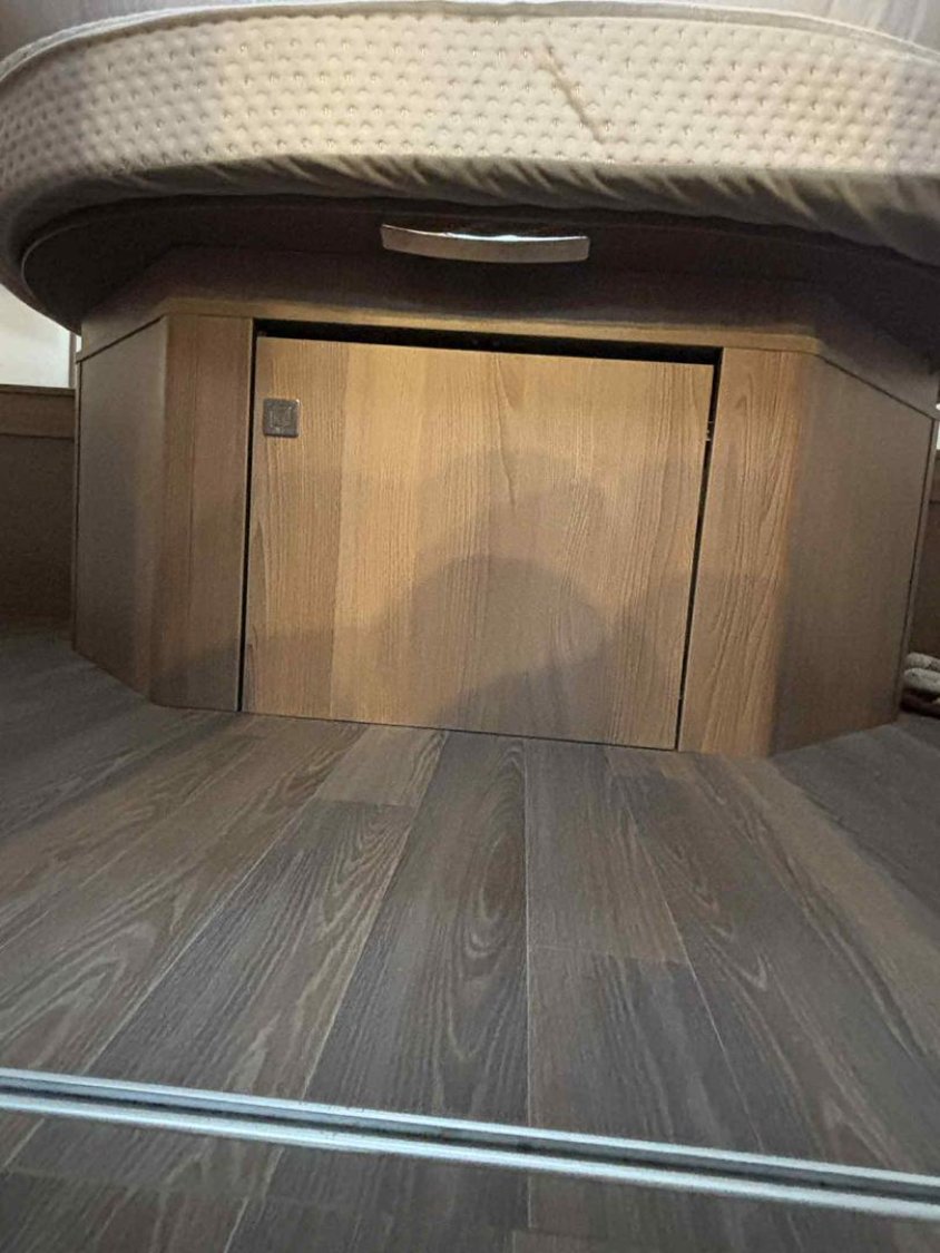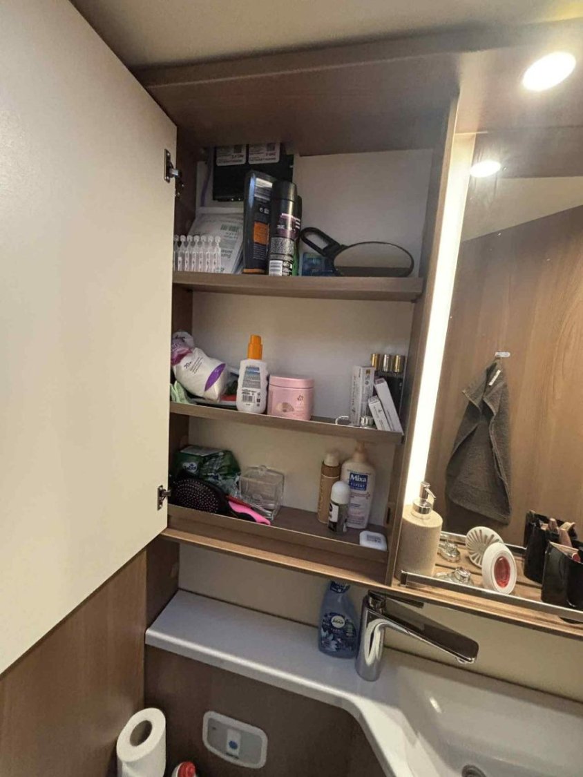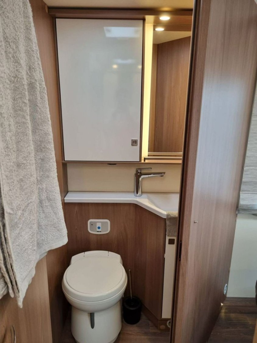 Le camping-car est équipé du chauffage et chauffe-eau TRUMA, d’un double plancher avec rangements, d’une batterie cellule 95 Ah et d’un panneau solaire Skyroof.