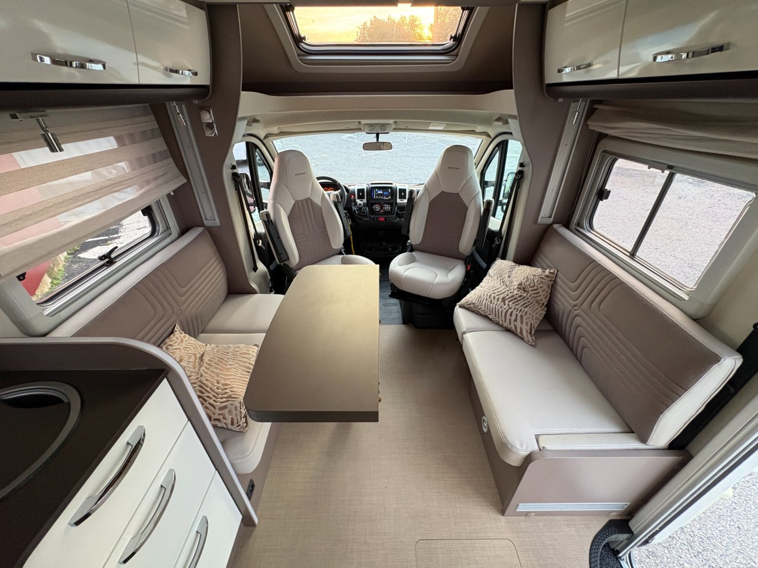 PANNEAU SOLAIRE, STORE EXTERIEUR, JANTES 16", MARCHE PIED ELECTRIQUE, PORTE 2 VELOS, POSTE MULTIMEDIA, CAMERA DE RECUL, 2 TV + ANTENNE SAT AUTO, LIT PAVILLON ELECTRIQUE, LIT CENTRAL RELEVABLE, GRANDE DOUCHE