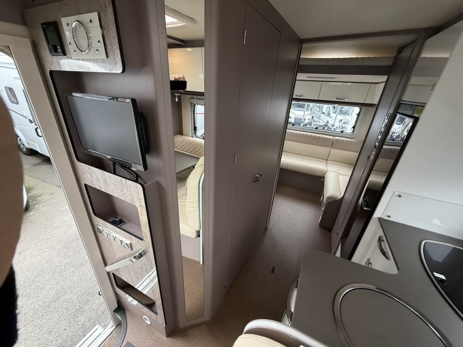 PARABOLE AUTOMATIQUE, CAMERA DE RECUL, ATTELAGE, CLIM, PORTE-VELO 2*, STORE EXTERIEUR, PANNEAU SOLAIRE, TV 2*, MULTIMEDIA