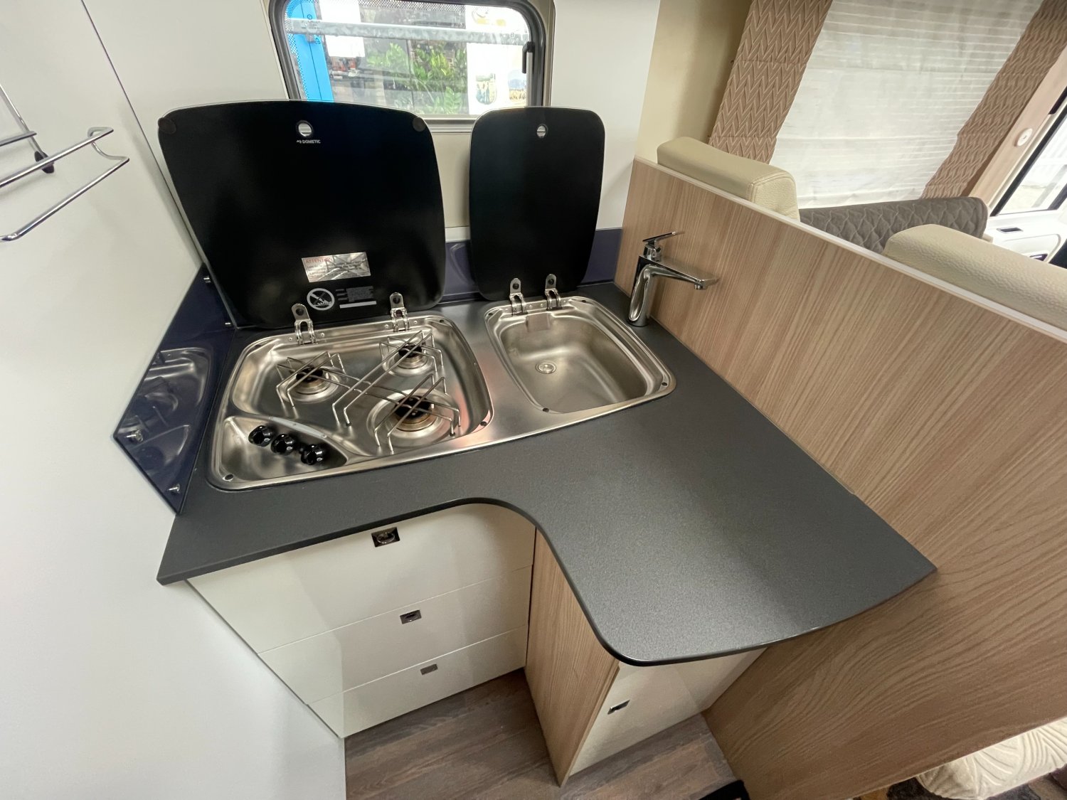 Attelage, Porte 2 vélos, TRUMA COMBI 6 GAZ, Douche et WC séparés, Dimension lit central: 190x150, Lit de pavillon: 194x150, Jantes alu, Caméra de recul, Ecran multimedia, Store exterieur, Frigo 142L, Antenne satellite, Prise 220, Prise 12v, prise USB, Boite manuelle 6 vitesses