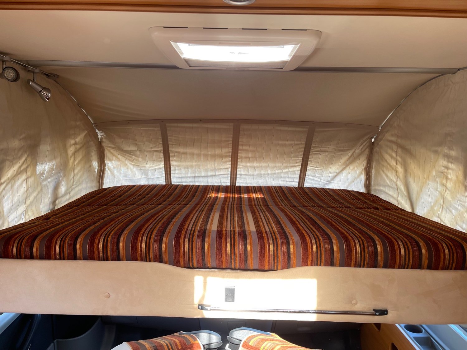 CLIMATISATION CELLULE, AUTORADIO, LIT DE PAVILLON, RIDEAUX OCCULTANT CABINE, STORE EXTERIEUR, CLIMATISATION PORTEUR, 2 BATTERIE CELLULE, LIT CENTRAL ELECTRIQUE, TRUMA COMBI, ANTENNE SATELLITE AUTOMATIQUE