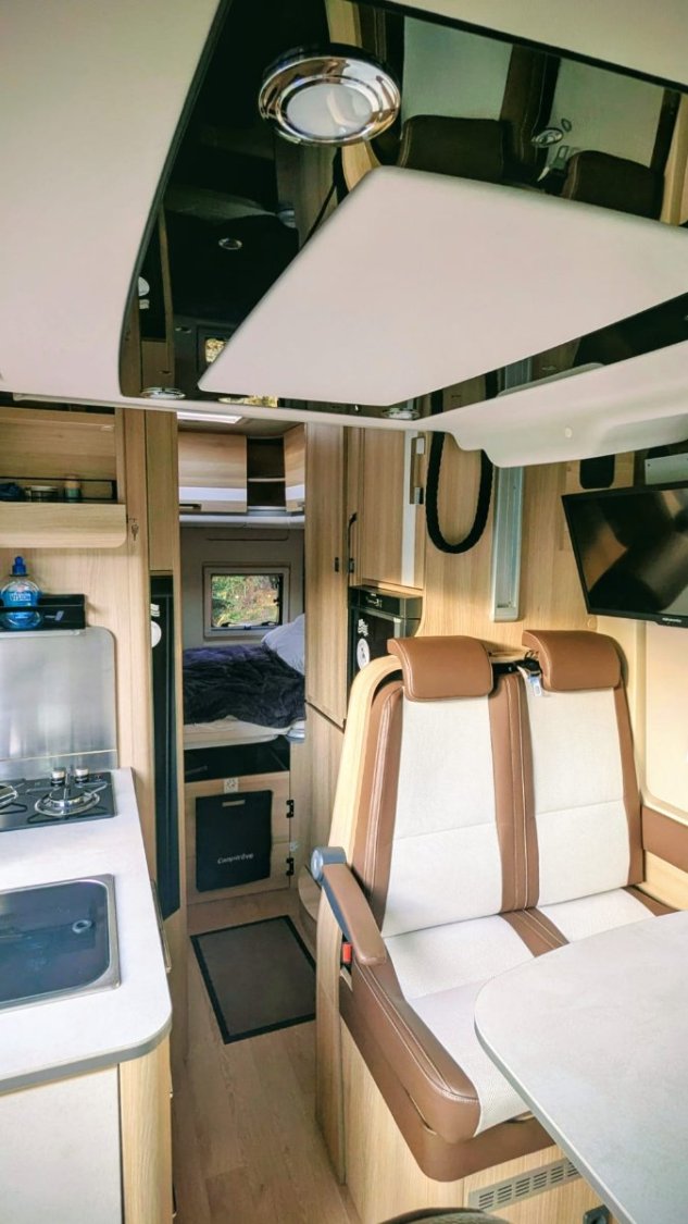 Magnifique campereve van xl limited peinture metal gris artense de mars 2024. Bva 9 rapports 180 CV. Douche et WC séparés. Couchage arrière transversal, matelas bultex 190×137, spots réglables en intensité. Couchage avant: lit pavillon électrique 190x125. Eau propre/eaux usées :110l/100l. Chauffage et chauffe eau truma combi.equipements de série: merche pieds électrique, soute revêtement titan, rail et crochets d arrimage,led porte latérale avec gouttière de protection et moustiquaire, réservoir isolé des eaux usées, baies cellules double vitrage avec stores plissés et moustiquaires, toit panoramique cabine skyview, jantes alu, lanterneaux transparents avec moustiquaire et occultation, penderie pivotante,module wc cassette extractible 18 l. Douchette extérieure eau chaude et froide, réchaud 2 feux gaz avec abattant, évier séparé, extension plan de travail, tiroirs de rangement casseroliers et couverts, tiroir epice et bouteilles, couleur des meubles natural avec rétro-éclairage, sellerie couleur patagonia, réfrigérateur aes avec conservateur 128l. Capacité gaz 2x13 kgs, inverseur de gaz automatique permet de rouler avec le chauffage gaz, système anticrash. Sièges cabine réglables en hauteur, pivotants avec 2 accoudoirs réglables . Régulateur et limiteur de vitesse, anti patinage et réduction de roulis, camera de recul avec écran intégré au ta bleau de bord . Station multimédia dab Pioneer et fonctions apple car/Android auto, hauts parleurs et commandes deportes en cellule 2 ème clef télécommande. Options posées par un professionnel: store extérieur thule, panneau solaire 130w rigide, attelage, détecteur de gaz monoxyde et soporifique, alarme bomasat1, batterie lithium super b 150 ah et convertisseur 200w, tv avec parabole. Certificat d étanchéité a jour. Garantie constructeur jusqu en mars 2026.