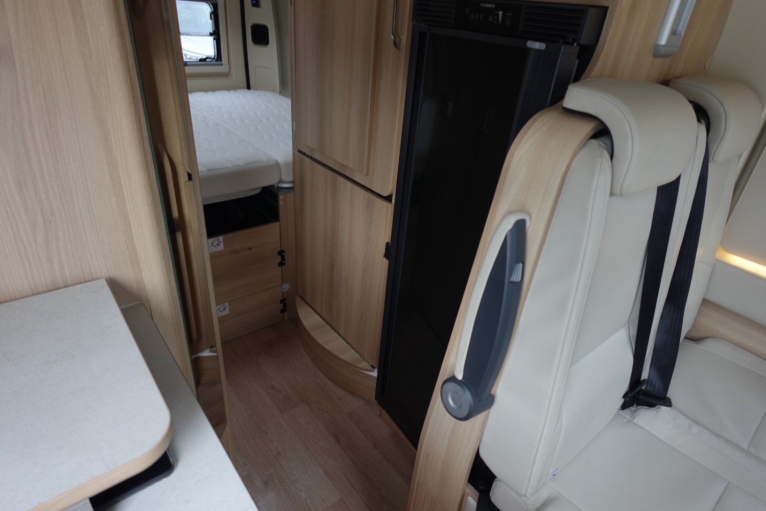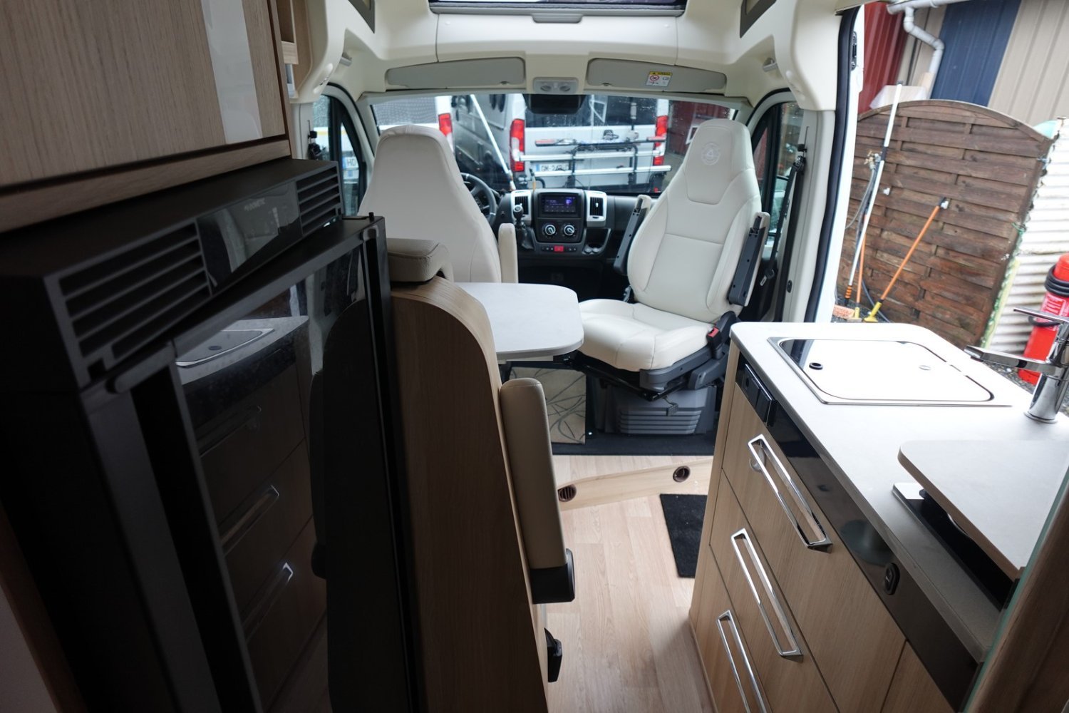 L’alternative au camping-car, le fourgon sans compromis comprenant un grand salon avant panoramique, un grand réfrigérateur, une cuisine avec de nombreux rangements, un lit transversal arrière et un lit de pavillon électrique 2 places. Le tout en série Limited sur-équipée.
