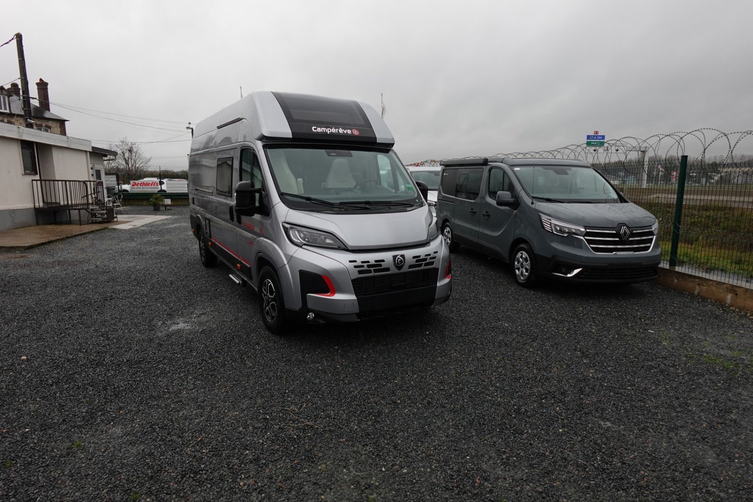 Son salon en L panoramique crée une atmosphère conviviale, tandis que la douche indépendante des WC garantit un véritable confort au quotidien. Exclusivité Campérêve : le MODUL’SPACE® avec son système de penderie breveté par le groupe RAPIDO, libère de l’espace en un clin d’œil. À l’arrière, la grande soute offre un volume modulable selon vos besoins.