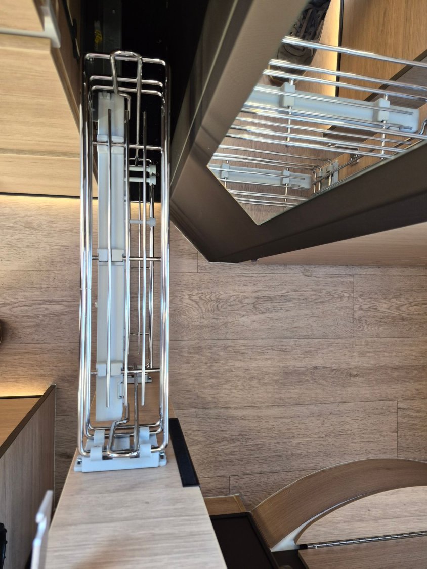 Son salon en L panoramique crée une atmosphère conviviale, tandis que la douche indépendante des WC garantit un véritable confort au quotidien. Exclusivité Campérêve : le MODUL’SPACE® avec son système de penderie breveté par le groupe RAPIDO, libère de l’espace en un clin d’œil. À l’arrière, la grande soute offre un volume modulable selon vos besoins.