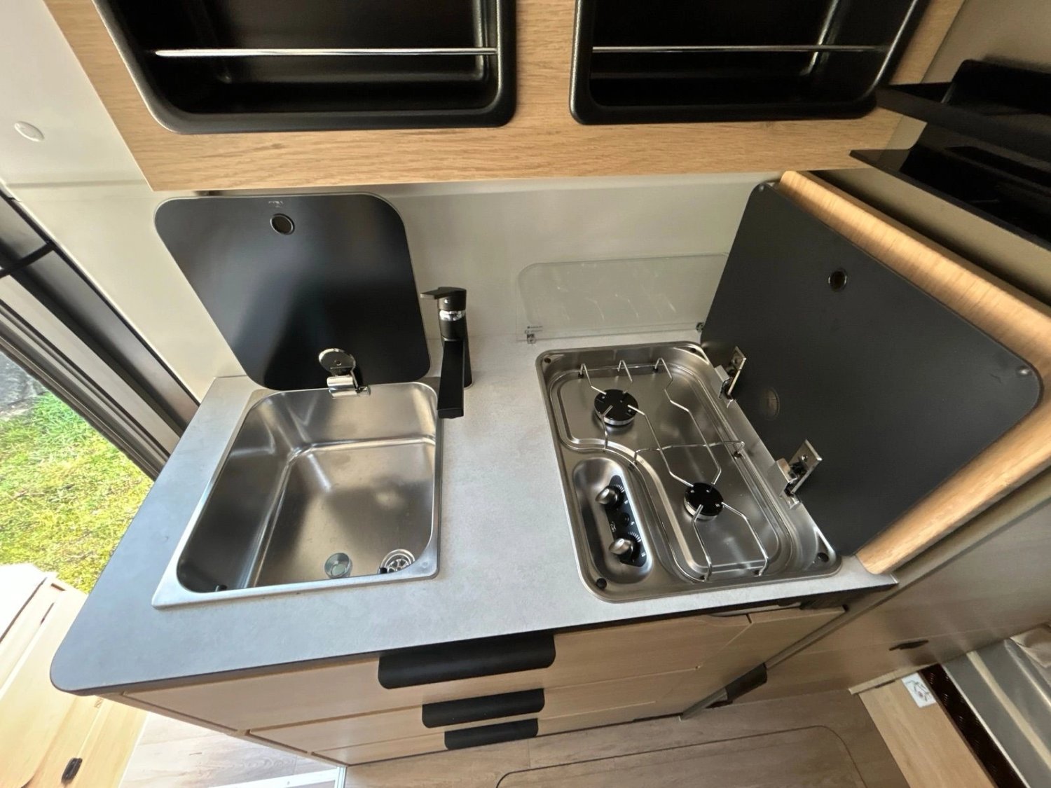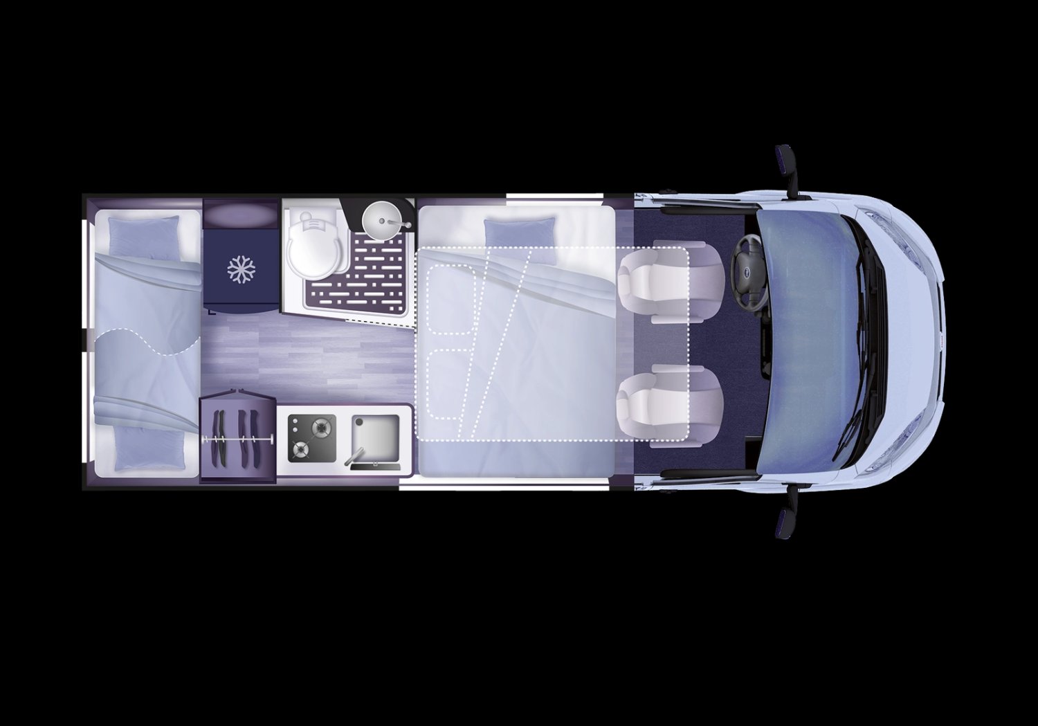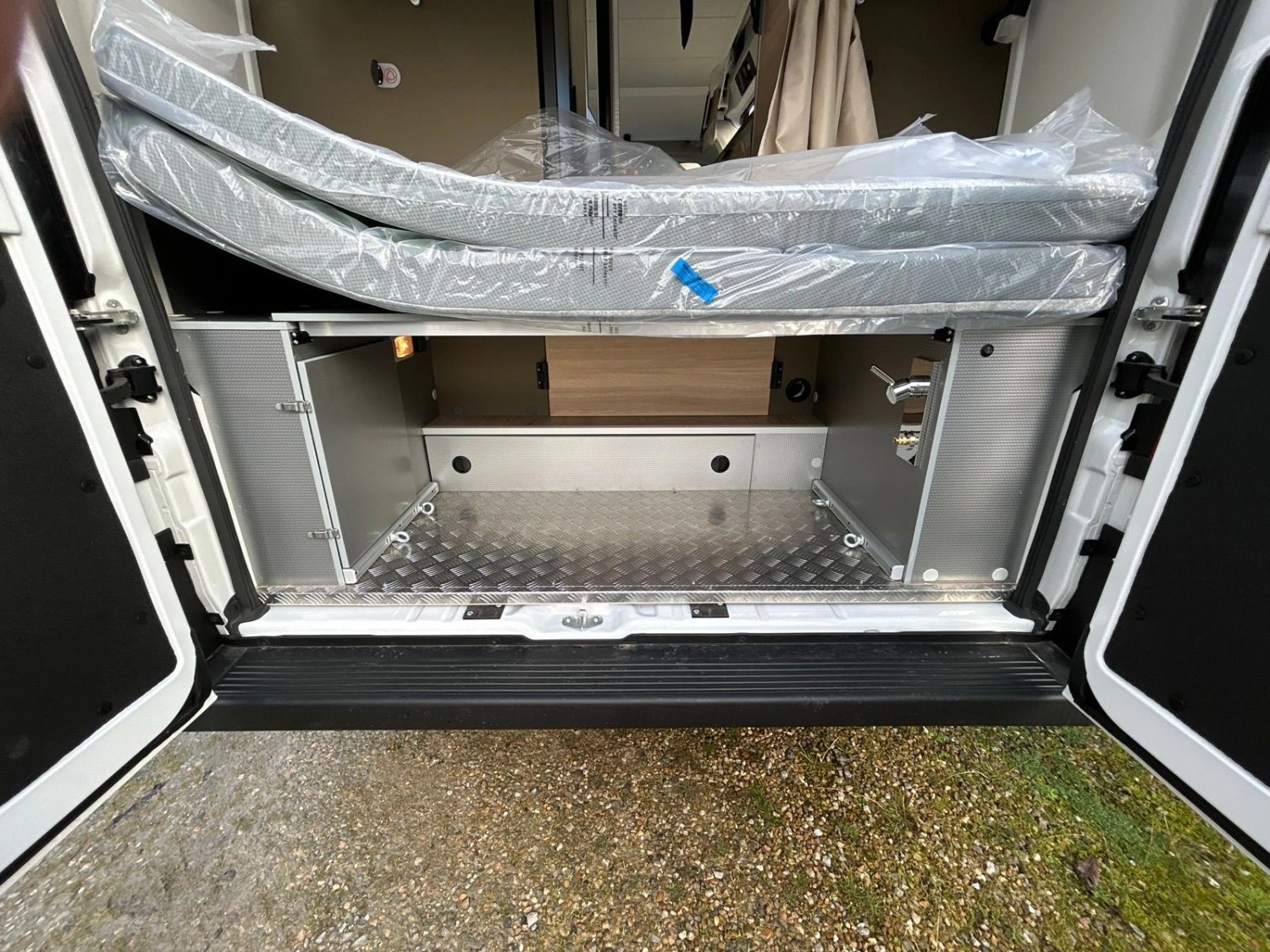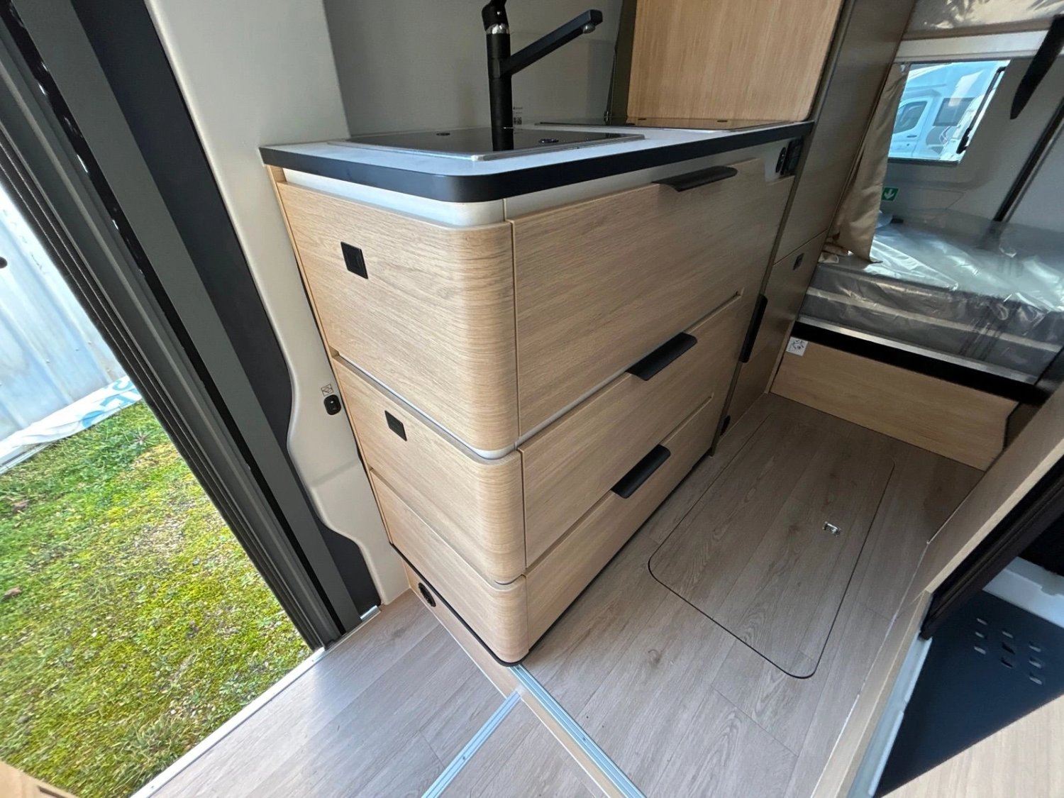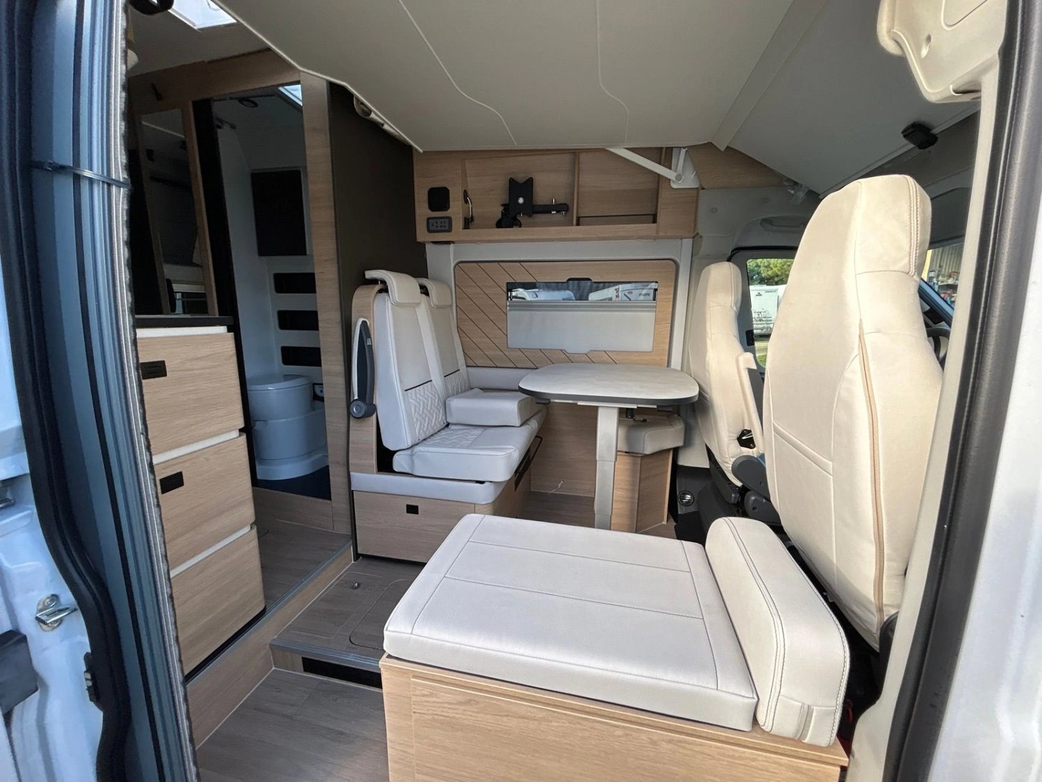 Porte moustiquaire ouvrant latéral, Commandes radio, Haut-parleurs salon, Douchette extérieure avec eau chaude/eau froide, Traction+ avec Hill Descent Control, Pneus all season, 2e clef télécommandée, Commandes au volant pour radio, Station multimédia DAB PIONEER® avec écran 6,8”, Caméra de recul avec écran de contrôle intégré au tableau de bord, Stores pare-brise et baies cabine plissés.