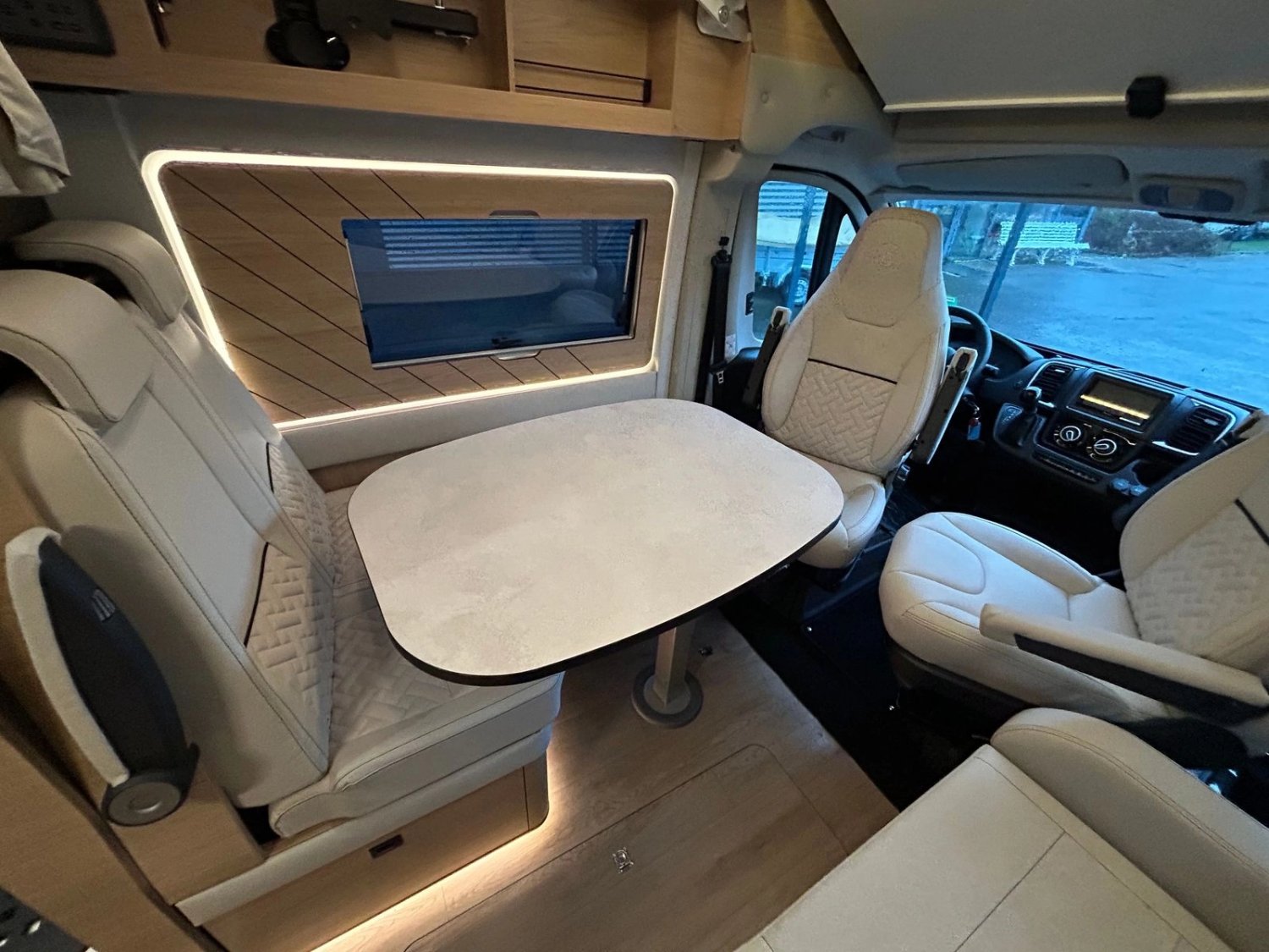 PACK CONFORT : Porte moustiquaire ouvrant latéral, Commandes radio, Haut-parleurs salon, Douchette extérieure avec eau chaude/eau froide, Traction+ avec Hill Descent Control, Pneus all season, 2e clef télécommandée, Commandes au volant pour radio, Station multimédia DAB PIONEER® avec écran 6,8”, Caméra de recul avec écran de contrôle intégré au tableau de bord, Stores pare-brise et baies cabine plissés.