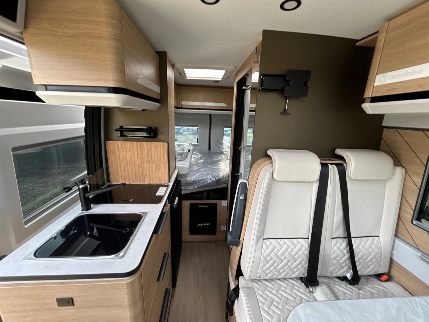 PACK CONFORT+ (1 490,00 € TTC) : Autoradio Multimedia, Caméra de recul Douchette eau chaude/froide a l’extérieur, Moustiquaire de porte cellule, Traction +, Volant multifonctions