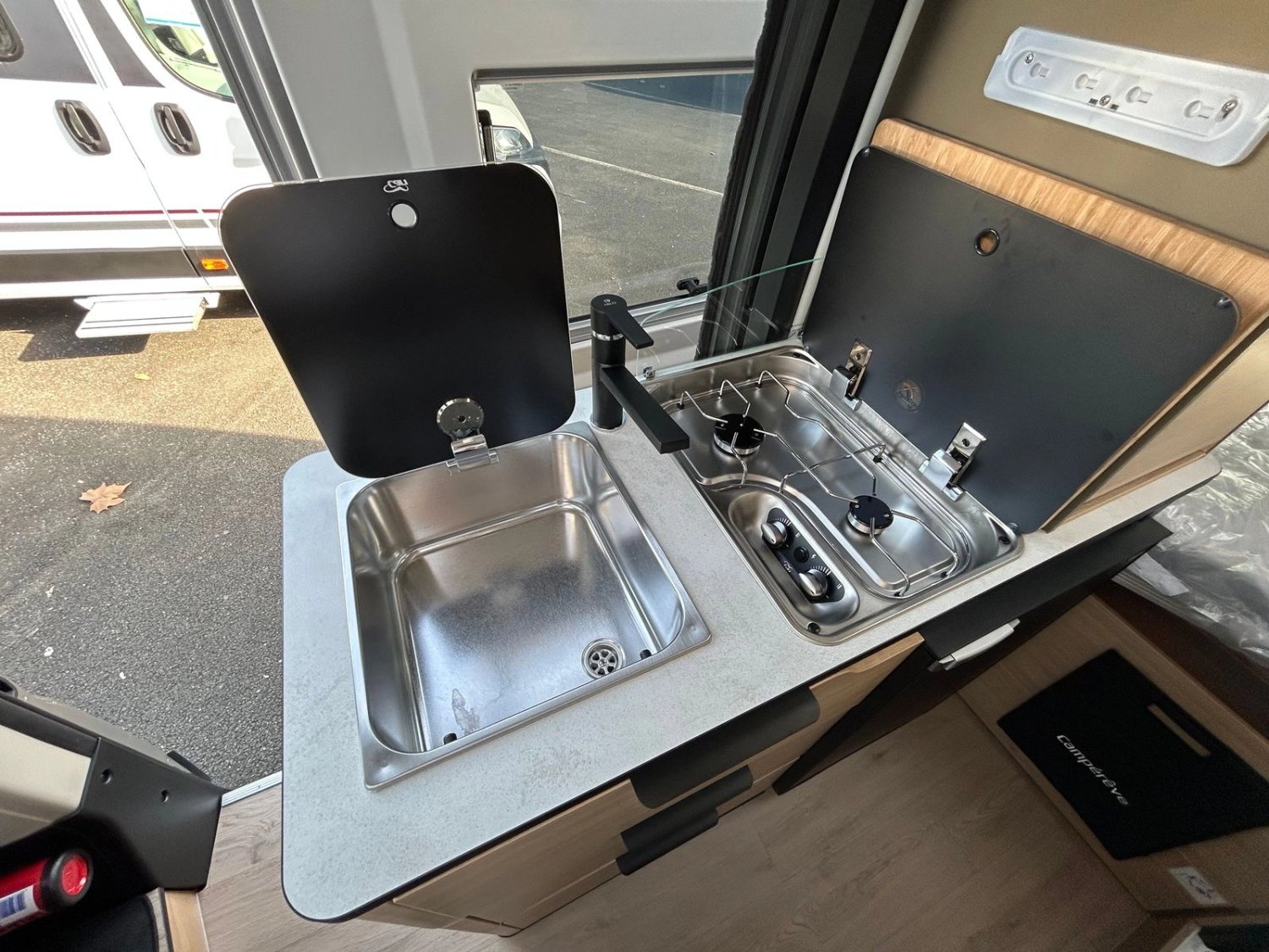 PACK CONFORT+ (1 490,00 € TTC) : Autoradio Multimedia, Caméra de recul Douchette eau chaude/froide a l’extérieur, Moustiquaire de porte cellule, Traction +, Volant multifonctions