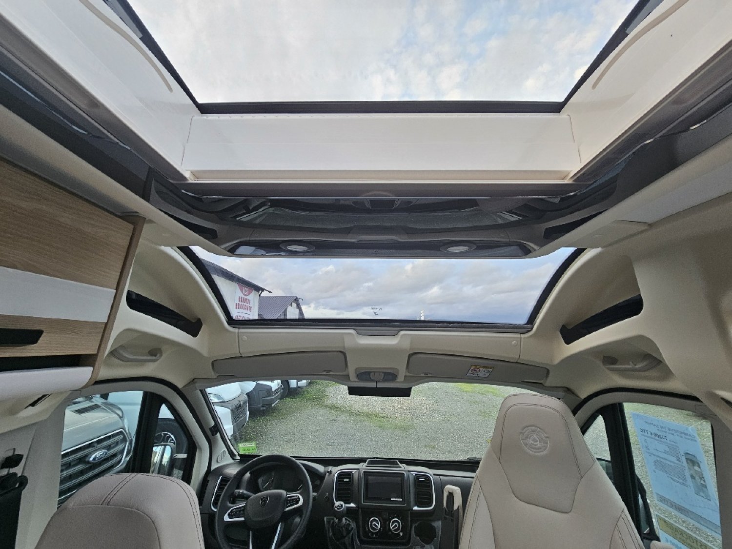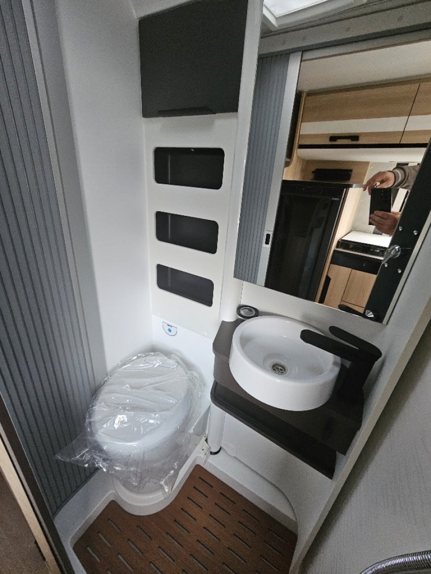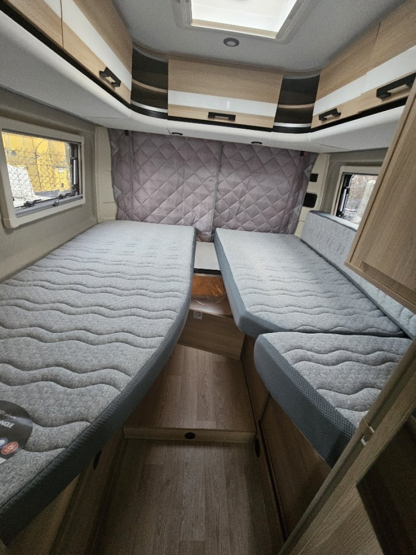 Magnifique fourgon aménagé comprenant un salon avant panoramique, un grand réfrigérateur, une salle d’eau DUO’SPACE avec paroi pivotante et des lits jumeaux. Le tout en série limitée sur-équipé.