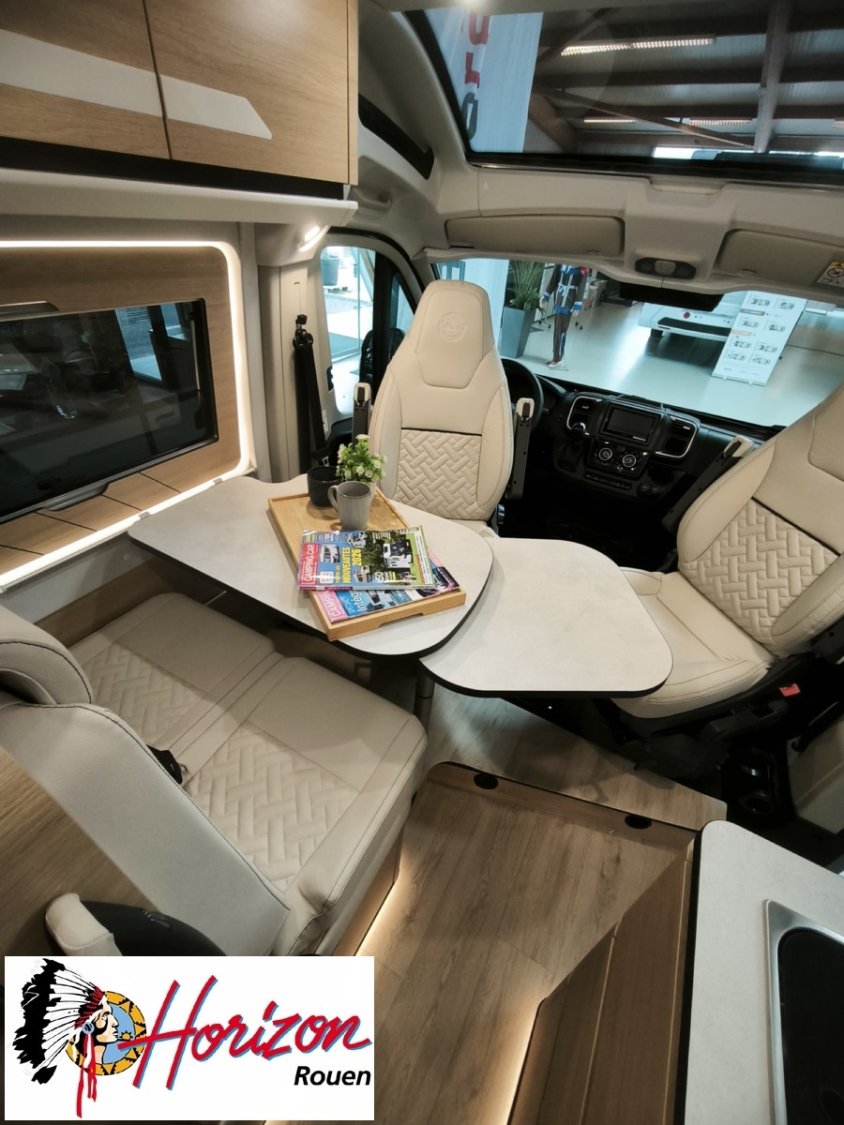 Fourgon avec Les lits jumeaux modulables offrent à chacun son espace personnel, garantissant un sommeil réparateur sans compromis.