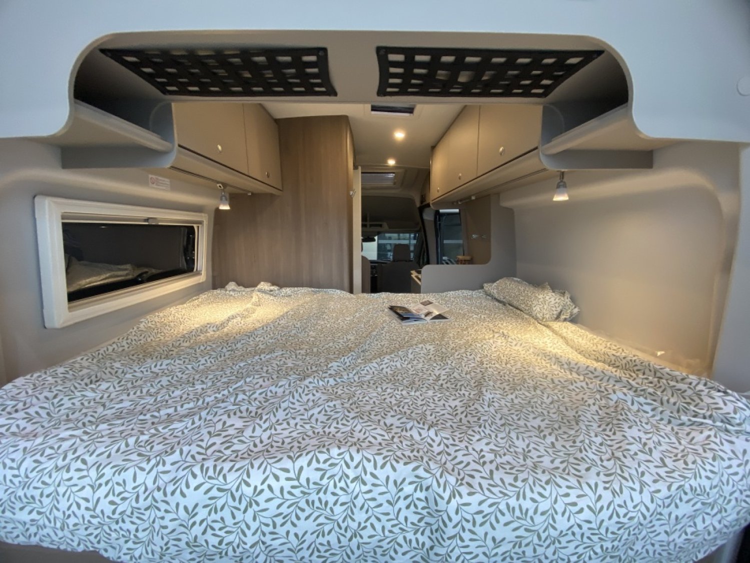Parce qu’il conjugue aventure et confort. Avec sa transmission intégrale, il permet de voyager partout, été comme hiver, sur routes ou chemins. Compact et agile (moins de 6 m), il offre malgré tout 3 couchages, une cuisine fonctionnelle et un toit vitré SkyDome qui inonde l’intérieur de lumière. Le compagnon idéal pour les baroudeurs modernes en quête de liberté.