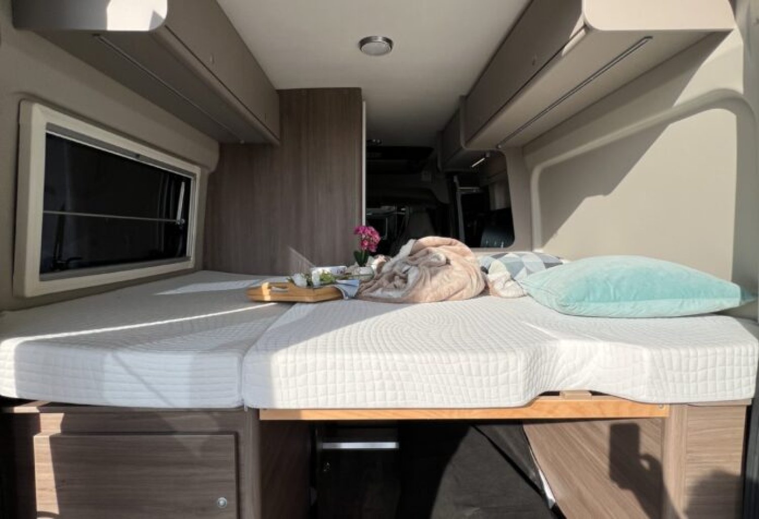 FOURGON 5M99 AVEC LIT TRANSVERSAL + TOIT RELEVABLE