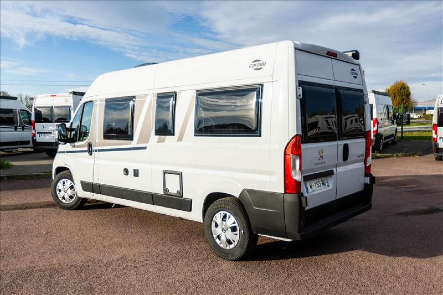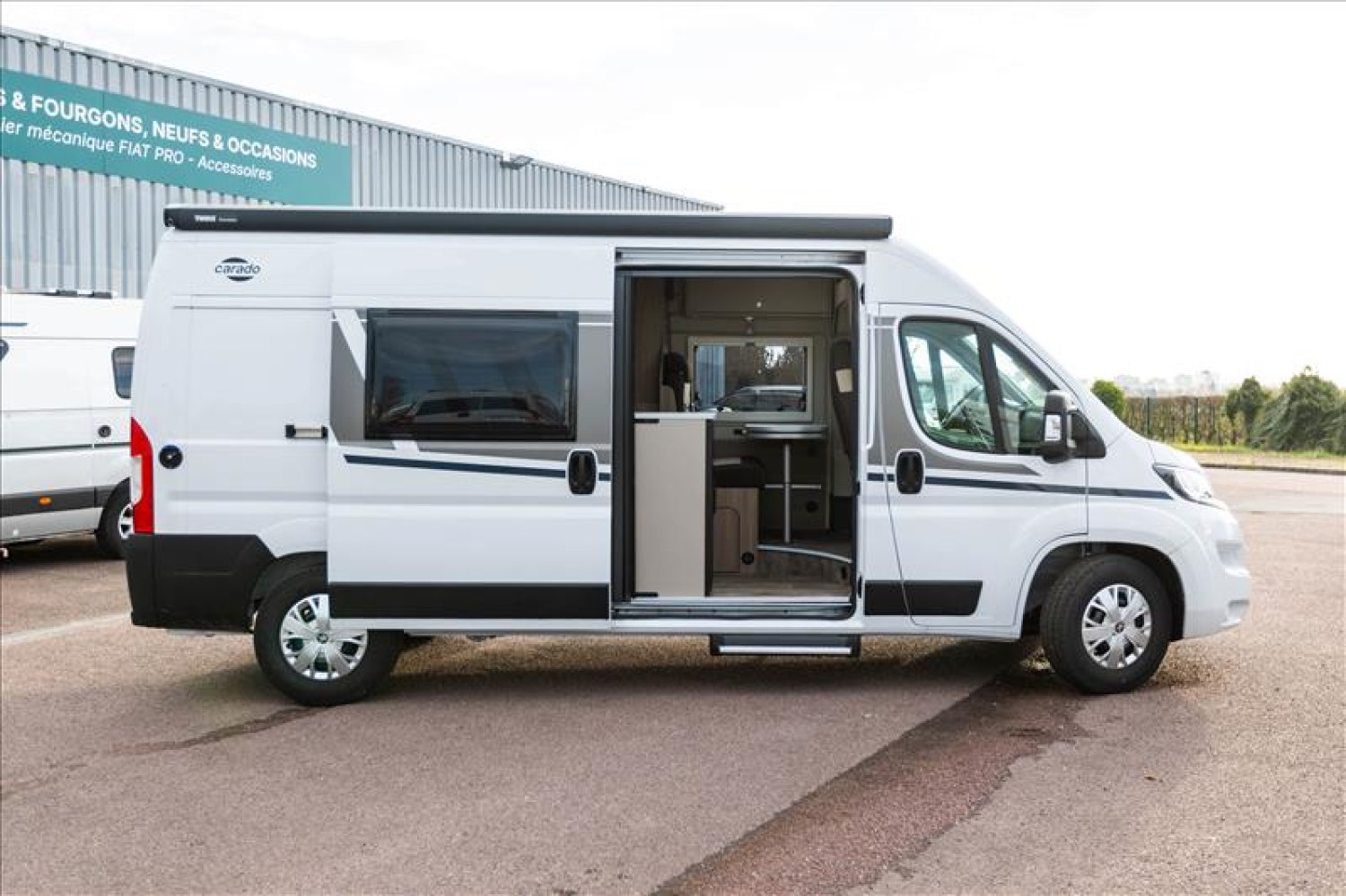 BAIE DANS LA SALLE D EAU, CAILLEBOTIS DE DOUCHE EN BOIS, CHAUFFAGE COMBI E6 (AVEC RESISTANCE ELECTRIQUE), COMMANDE DIGITALE POUR CHAUFFAGE COMBI, COULEUR EXTERIEURE : BLANC GLACIER, FACADES DE MOBILIER DECOR STANDARD, JANTES TOLE 16 POUCES AVEC ENJOLIVEURS, LANTERNEAU 700 X 500 AU DESSUS DINETTE, MARCHE PIED ELECTRIQUE, PACK BASIC COMPOSE DE :, PACK CONFORT SERIE CV, PACK DOUCHE, PARE CHOCS AV PEINTS COLORIS BLANC, PRE CABLAGE POUR PANNEAUX SOLAIRES, PRE CABLAGE TV 12V ET SUPPORT ECRAN PLAT, PRE EQUIPEMENT CAMERA DE RECUL, PRISE USB POUR RAIL MULTIFONCTION, RALLONGE DE TABLE, SERIGRAPHIE CARADO STANDARD, STORE EXTERIEUR 3.75M, STORES PLISSES CABINE, TRANSFORMATION DE LA DINETTE EN COUCHAGE, VEHICULE NEUF D EXPOSITION
