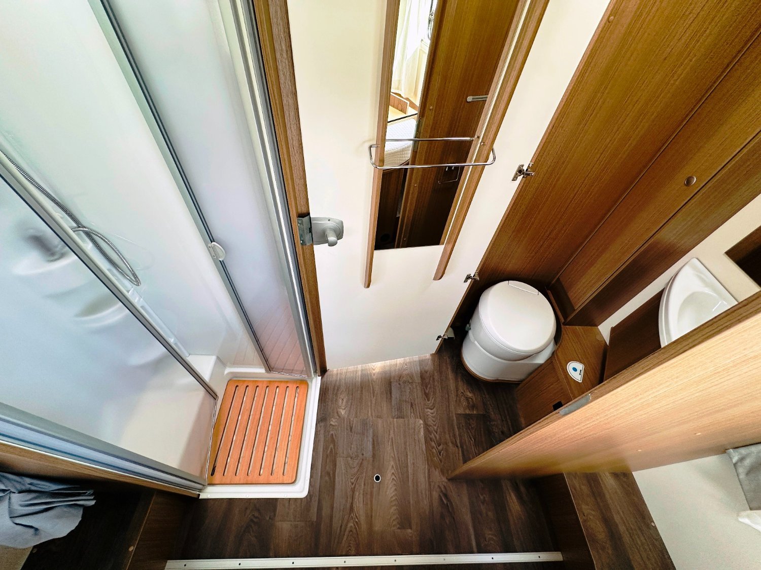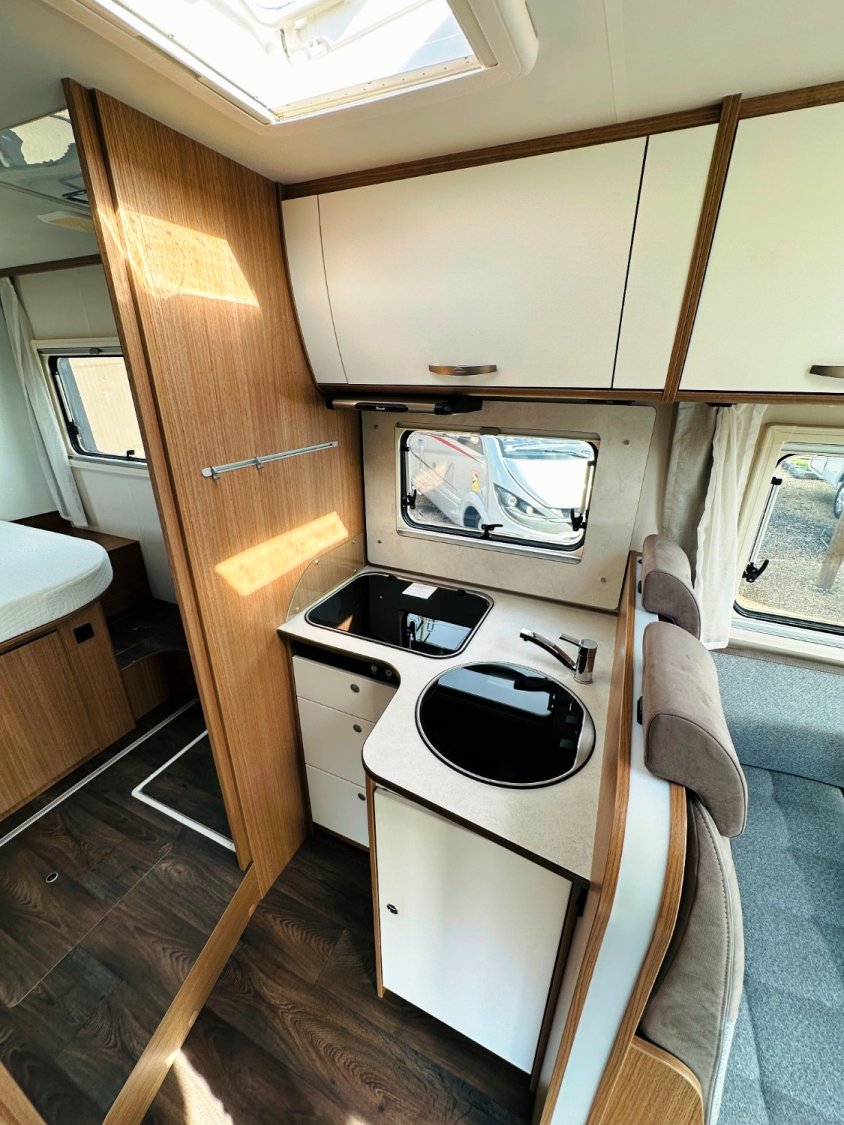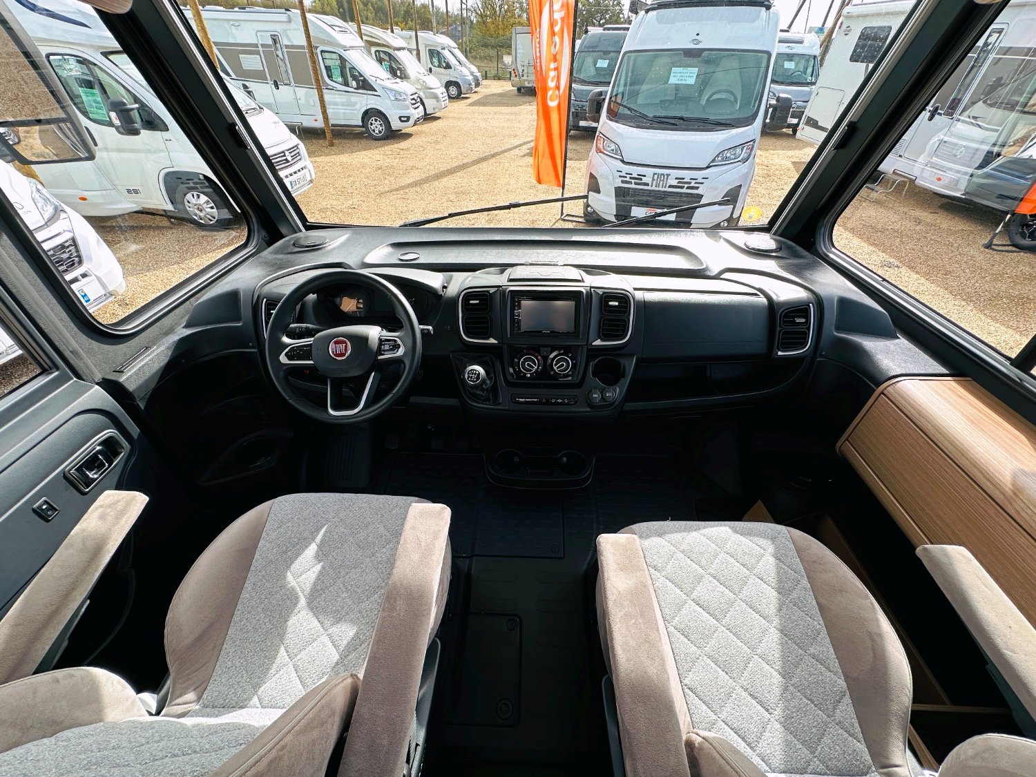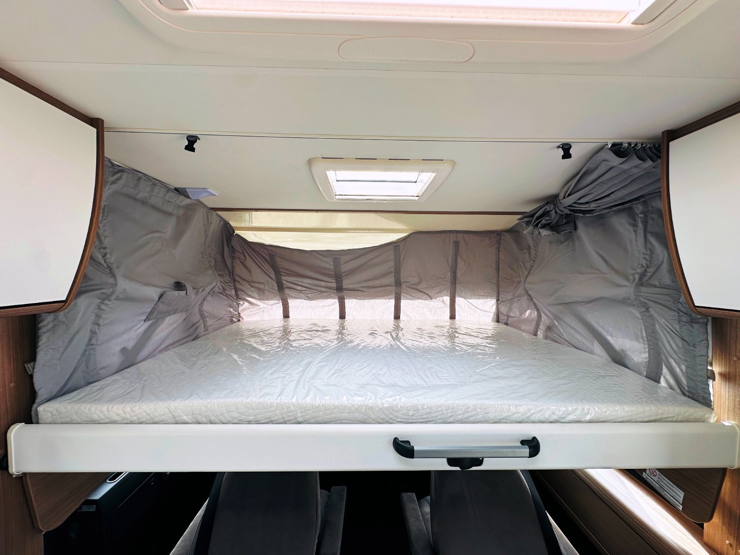 Intégral Carado, lit central (150 Cm), vaste soute garage (plusieurs vélos adultes), 4 couchages, salle de bain avec grande douche entièrement séparée, cuisine spacieuse et toute équipée, vaste salon avant avec sièges pivotant et table centrale convertible en un couchage d’appoint + lit pavillon en cabine pour deux adultes.