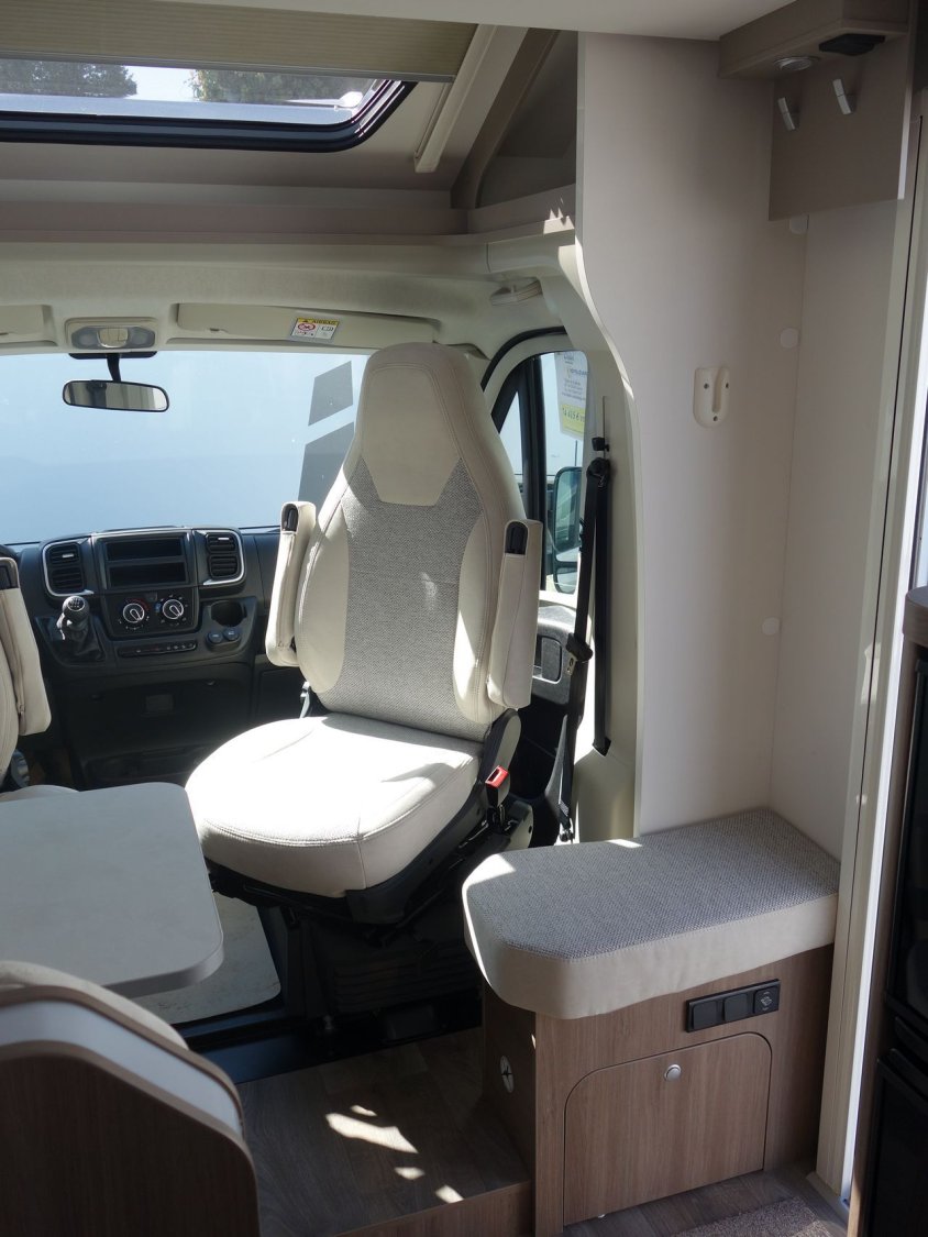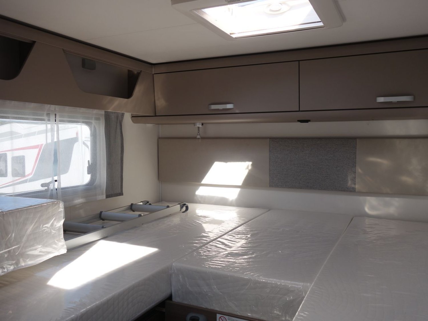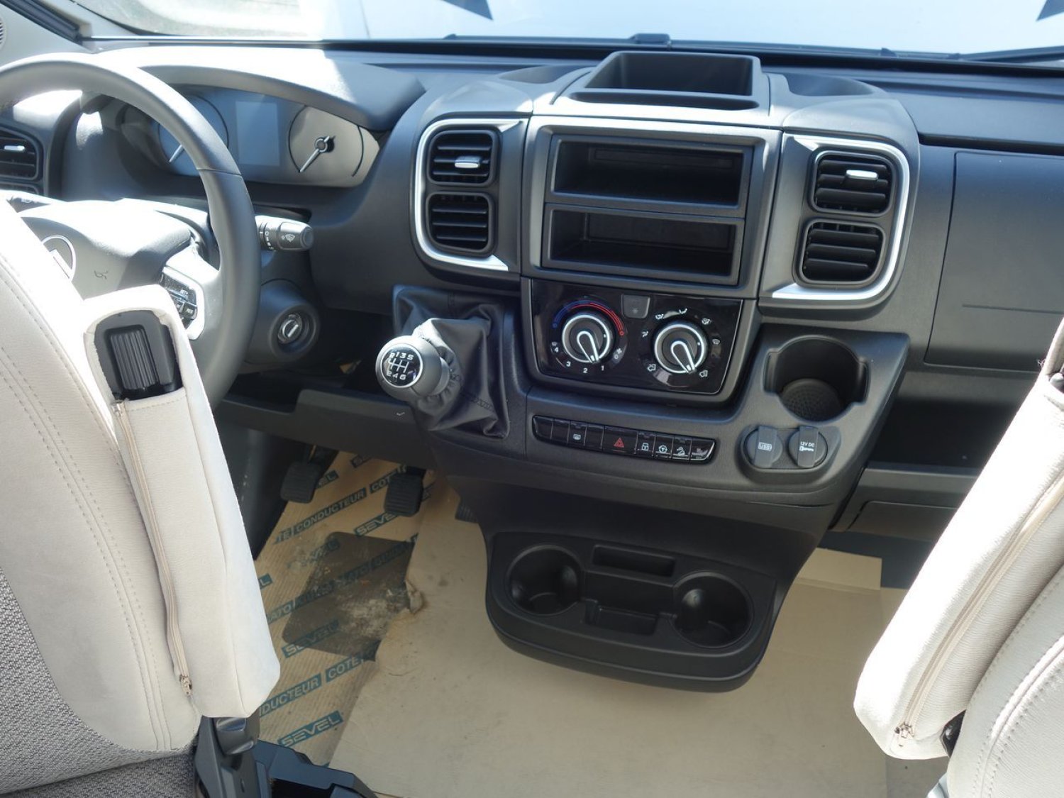 Profilé avec lits jumeaux transformables sur garage, cabinet de toilette avec WC et douche séparée de type vario, pack PRO + : parechoc peint, feux anti-brouillards, volant et pommeau de vitesse en cuir, jantes alliage 16 pouces bicolores, stores plissés cabine, store extérieur, toit panoramique de cabine, réfrigérateur 156 l, réservoir eaux usées isolé, baies à cadre affleurant ... conditions déstockage en concession