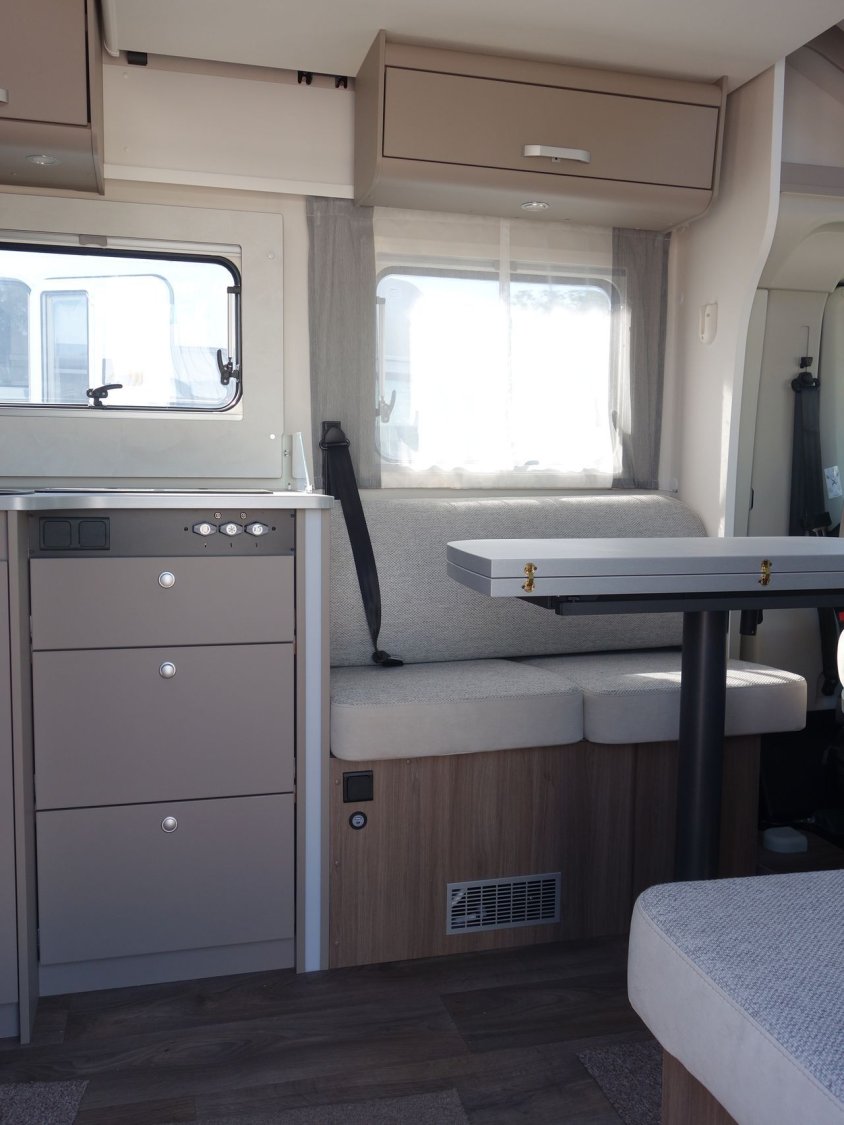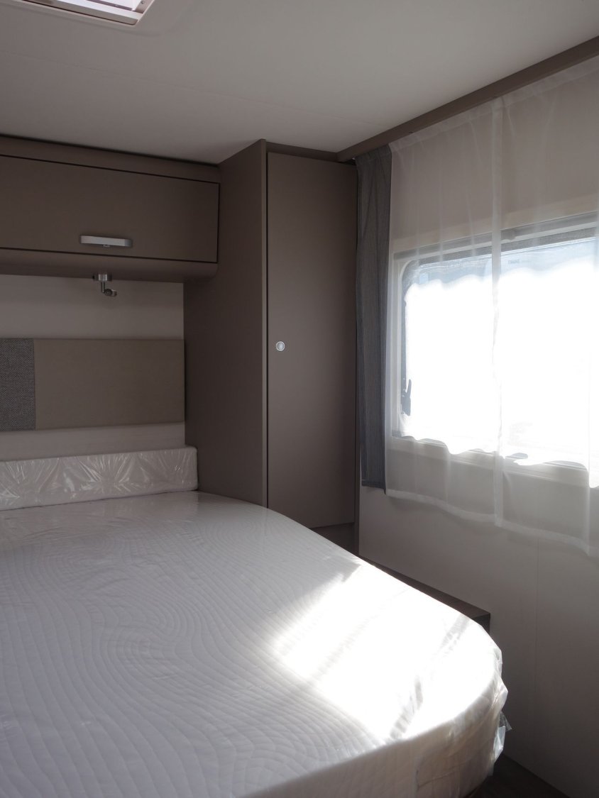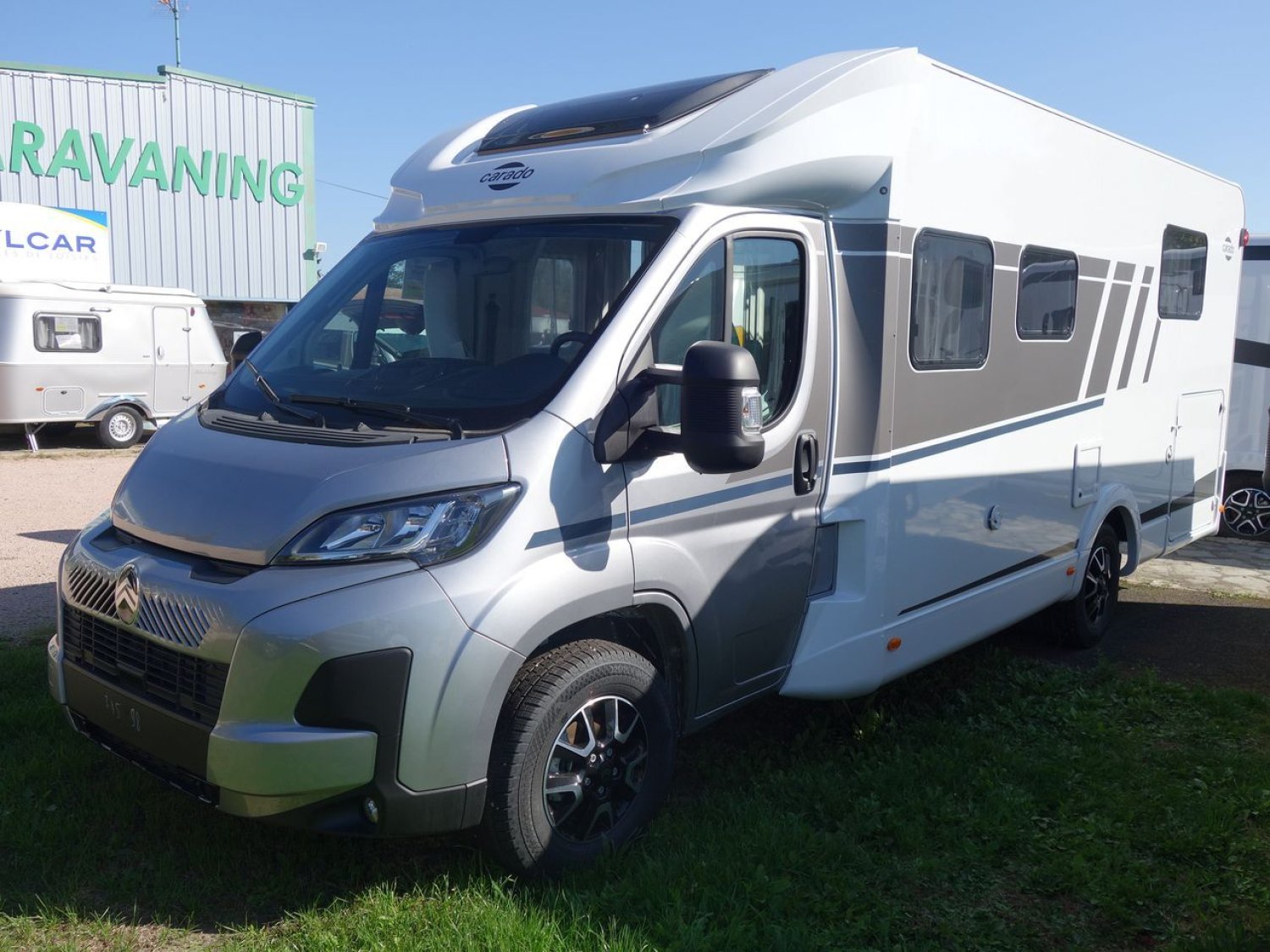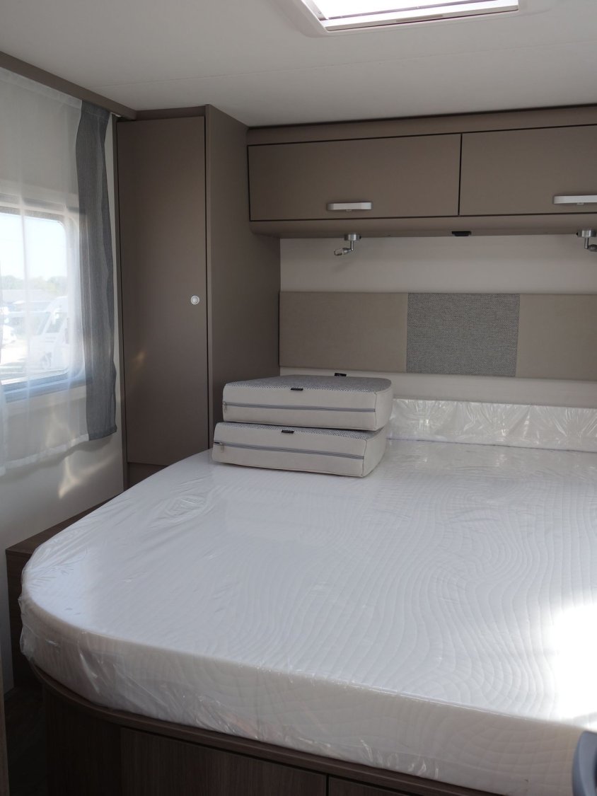 Profilé lit central sur garage porteur CITROEN peinture métal gris artense, avec lit de pavillon, cabinet de toilette et douche séparés, pack PRO + : parechoc peint, feux anti-brouillards, volant et pommeau de vitesse en cuir, jantes alliage 16 pouces bicolores, stores plissés cabine, store extérieur, toit panoramique de cabine, réfrigérateur 156 l, réservoir eaux usées isolé, baies à cadre affleurant ..., banquette face/face... offre déstockage en concession.