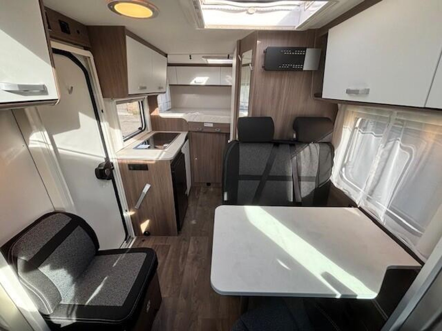 PACK PRO+ Ambiance intérieure Graphite, Couleur extérieure : gris Artense métallisé, Pack Optique 1, Toit panoramique de cabine, 2ème trappe extérieure, Réservoir eaux usées isolé, Inscription pro+, Store extérieur 3,5 m coloris blanc, Stores plissés de cabine, Coloris spécifique des portes des meubles de pavillon, Pack Optique 2, Jantes alliage, Pack Confort + Transformation dinette en couchage : 4585 €
