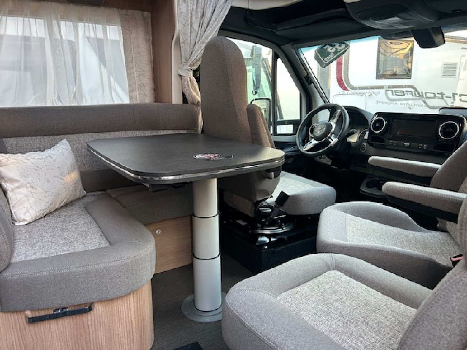 (Prise USB dans le placard de pavillon - Capteur de pluie - Volant cuir - Essieu avant avec capacité de charge renforcé - Pré équipement radio avec antenne DAB+, 4 HP, réception DVB-T2 - Volet roulant moustiquaire porte cellule - Amplificateur de charge - Multimédia MBUX 10,2'' avec GPS DAB+ - Verre thermo-isolant sur vitres frontales Stores REMIS en cabine de conduite - Frein de stationnement électrique - grande porte de garage côté conducteur- Assistant à la signalisation routière - Ecran multifonctions avec affichage couleur - Réglages hauteur et inclinaison des sièges cabine - Batterie lithium 90Ah - dôme de toit MIdi-Heki avec spots au dessus du salon - ventilation des toilettes SOG par le plancher)