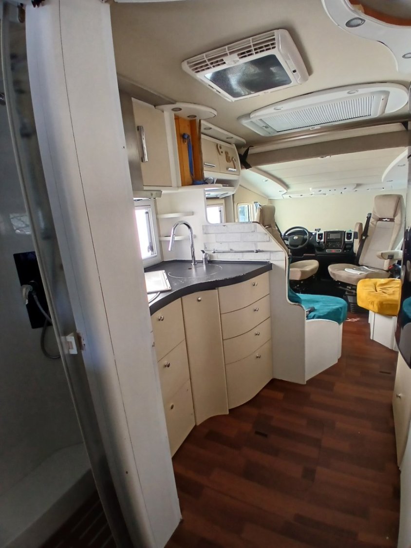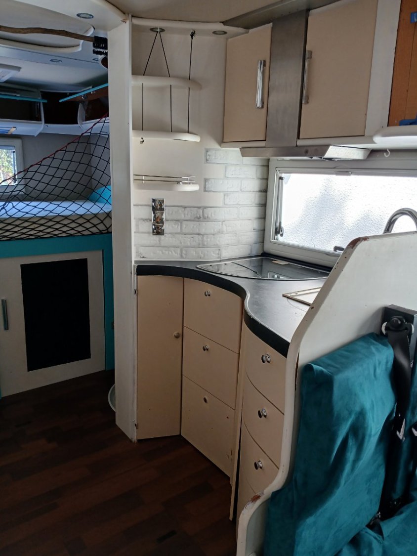Store extérieur + moustiquaire à chaque ouverture - Store de 4.50M marque Thule - Grand réfrigérateur avec congélateur AES - 3 feux gaz + hotte - Chauffage Truma - Panneau solaire - Capacité des eaux propres 120L - Capacité des eaux usées 100L