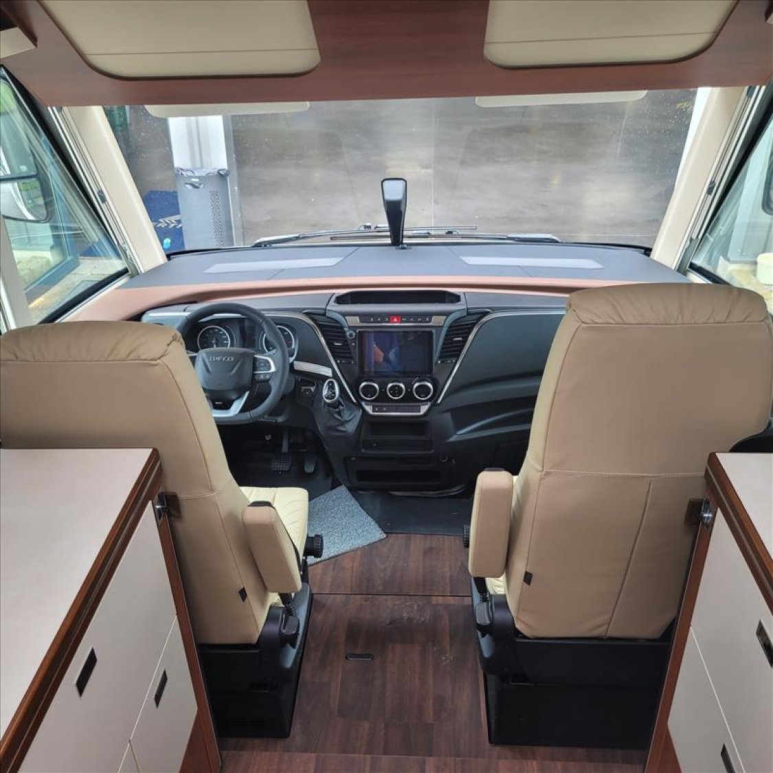 Plissé occultant au niveau des vitres latérales, Porte de la cabine avec double verouillage de sécurité, Phares avant full LED Carthago avec feux de jour à LED, Plan de travail au décor "Savannah" et rebord en Corian, Plan de travail rétroéclairé avec une bande lumineuse à LED, Plissé de pare-brise à structure alvéolaire isolante, Soute hauteur utile jusqu'à 57 cm, Trois grandes baies panoramiques au niveau du salon en U, Sèges confort Aguti "Roadliner" côté conducteur/passager, EPS/ABS/anti-démarrage électronique/ASR/Hillholder, Très grand pare-brise panoramique prolongé vers le bas, Essieu avanr à roues indép. et suspension barres de torsion, Feu antibrouillard, Grand frigo avec porte s'ouvrant dans les deux sens, Grand rangement à travers central, Prise 12V en cabine, garage scooter, Chauffage à l'eau chaude Alde avec booster de chaleur en cab, Châssis surélevé avec roues jumelées sur essieu arrière, Accès depuis l'ext. via plusieurs grandes portes de soute, AdBlue 20L, Essieu arrère rigide à suspension parabolique, Jantes en alu de 16 pouces, Lanterneau panoramique Heki III au-dessus du salon en U, Lève-vitre à commande électirque, Capot design "liner", Écran d'affichage d'assistance (TFT Cluster central), Prise 230V niveau du salon, entrée, cuisne,SDB, garage scoot, Prise USB en cabine, salon, en chambre, Préparation de l'attelage, Rangement à travers chauffé et éclairé, Roue de réserve avec support sous le plancher du garage, Rouleaux de charges lourdes à l'arrière, Réchaud 3 flammes "Profi Gourmet", Régulateur de vitesse, Réservoir à carburant de 90L
