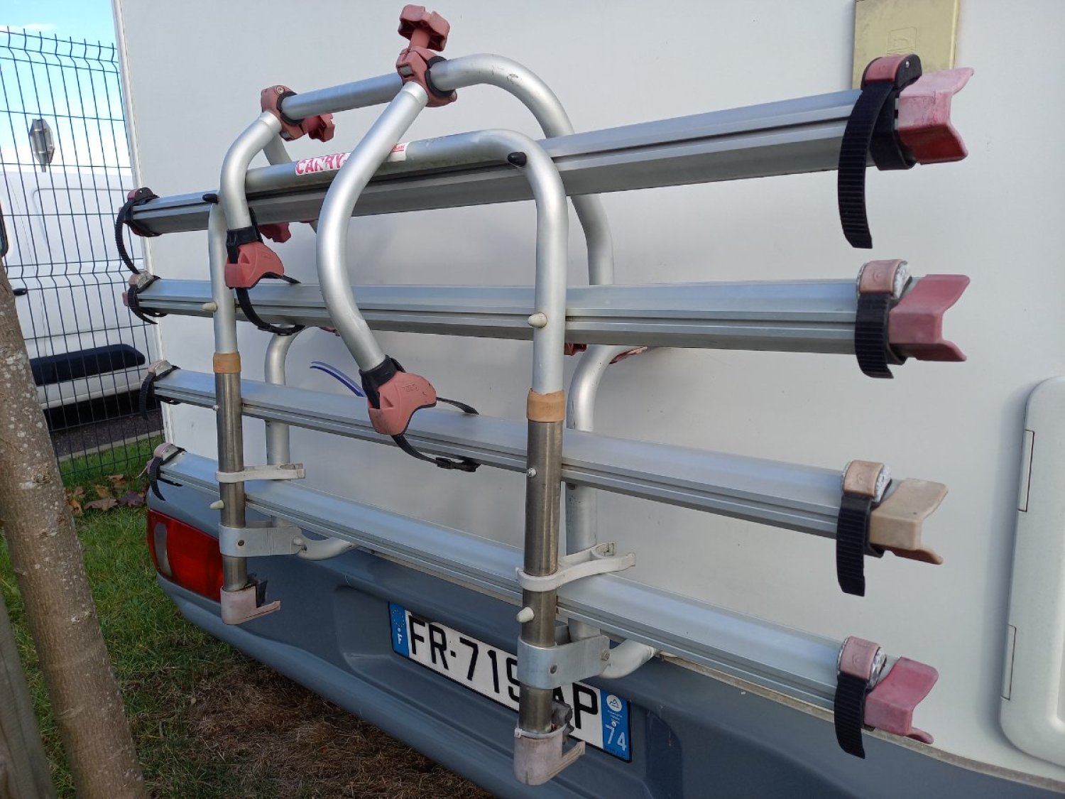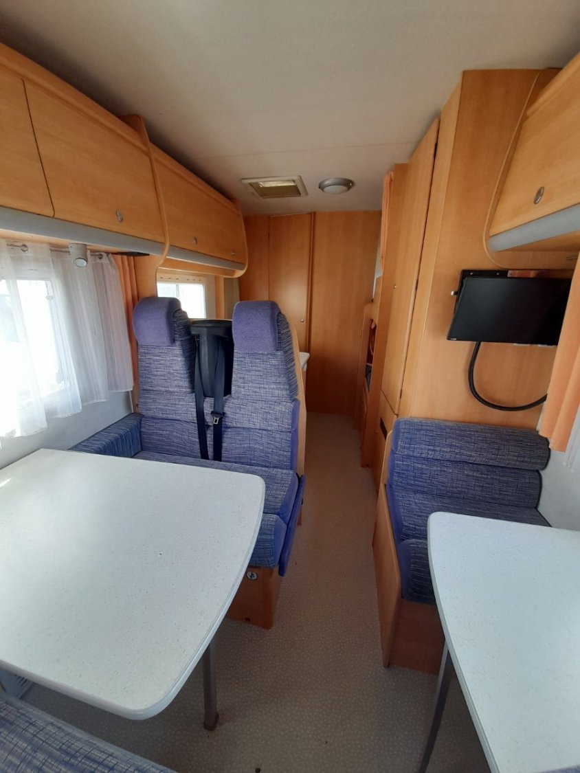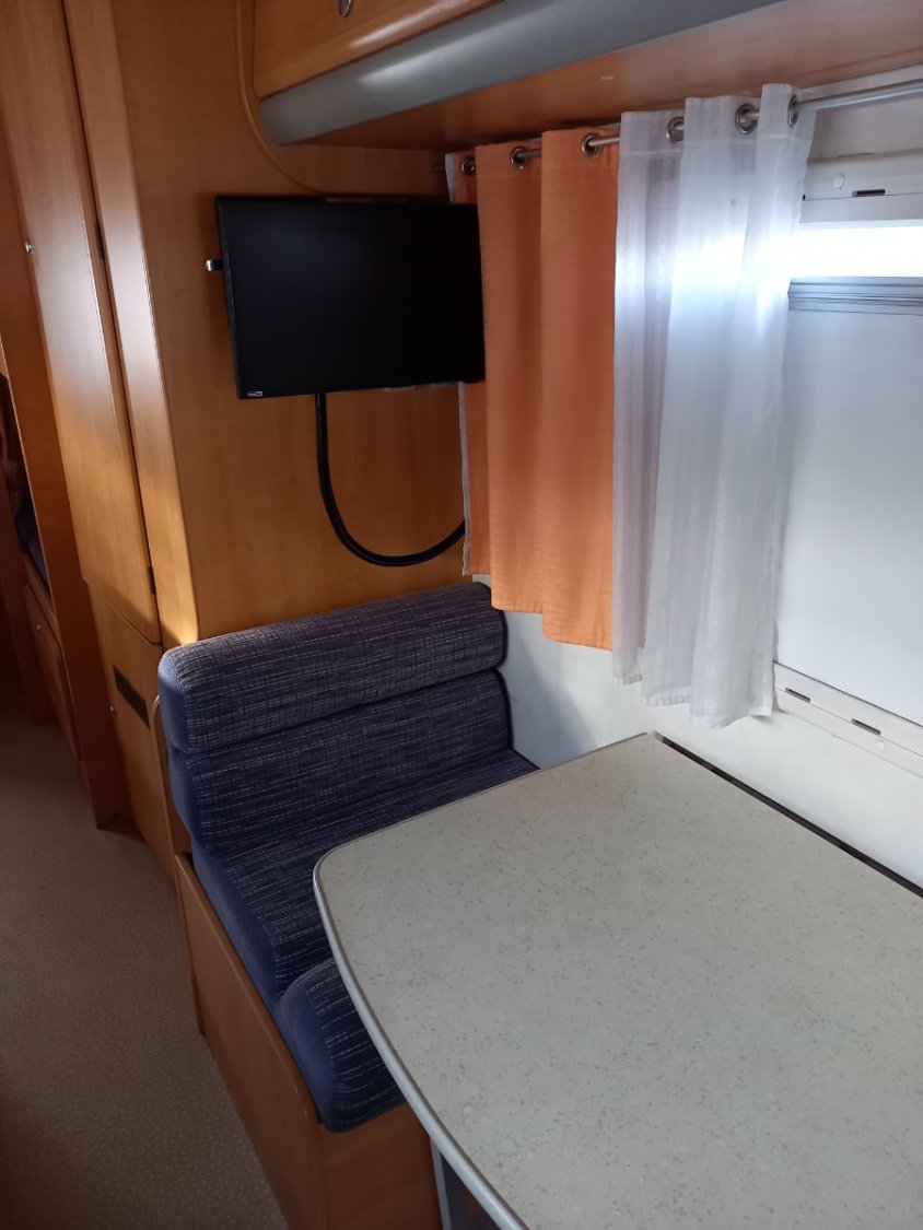Salle d'eau avec douche et WC Chauffage Truma + Climatisation cabine + télévision LCD VEHLINE 48cm + système haut-parleur Pioneer + convertisseur 12V/230V KOONEKT portable 500W+ panneau solaire 150Wc + éclairage led + store extérieur 4m neuf + porte vélos (4) + autoradio AVH-Z7200DAB Pionner-carte GPS avec caméra de recul