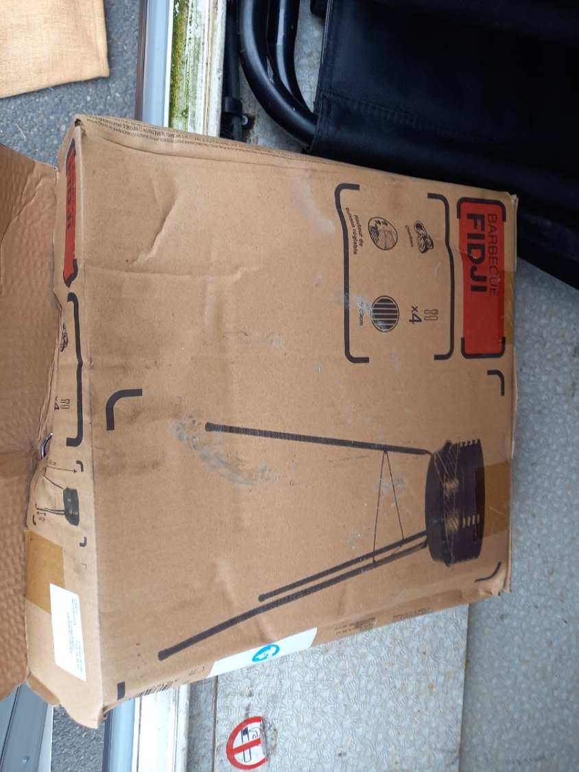 Vendu avec tous les ustensiles et vaisselle camping, table aluminium neuve, 4 chaises pliables, barbecue FIDJI, bidons entretien moteur