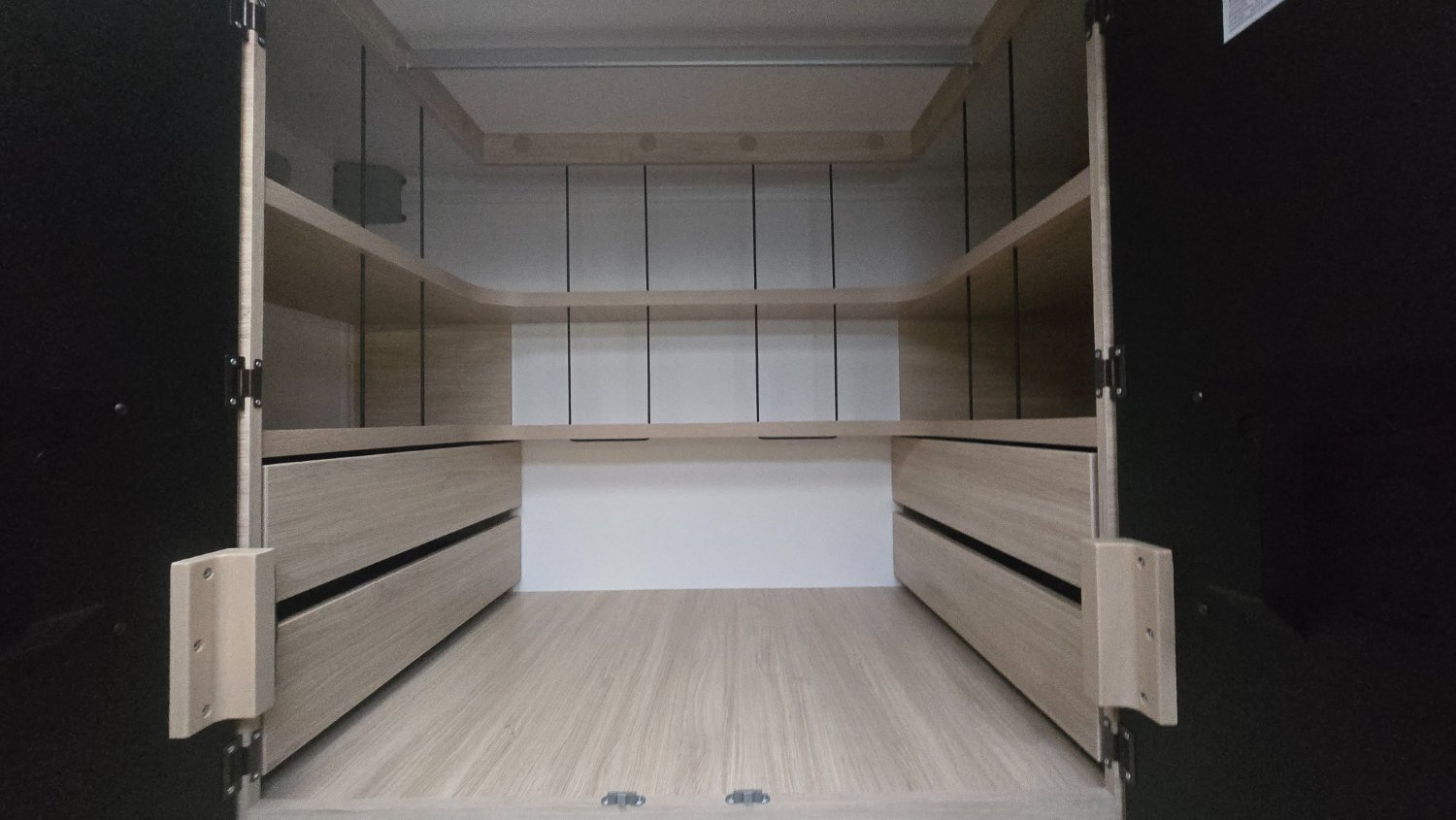 Beaucoup d'espace aussi en cuisine, plan de travail et surtout de l'espace toilette/dressing qui s'occupe toute la partie arrière.