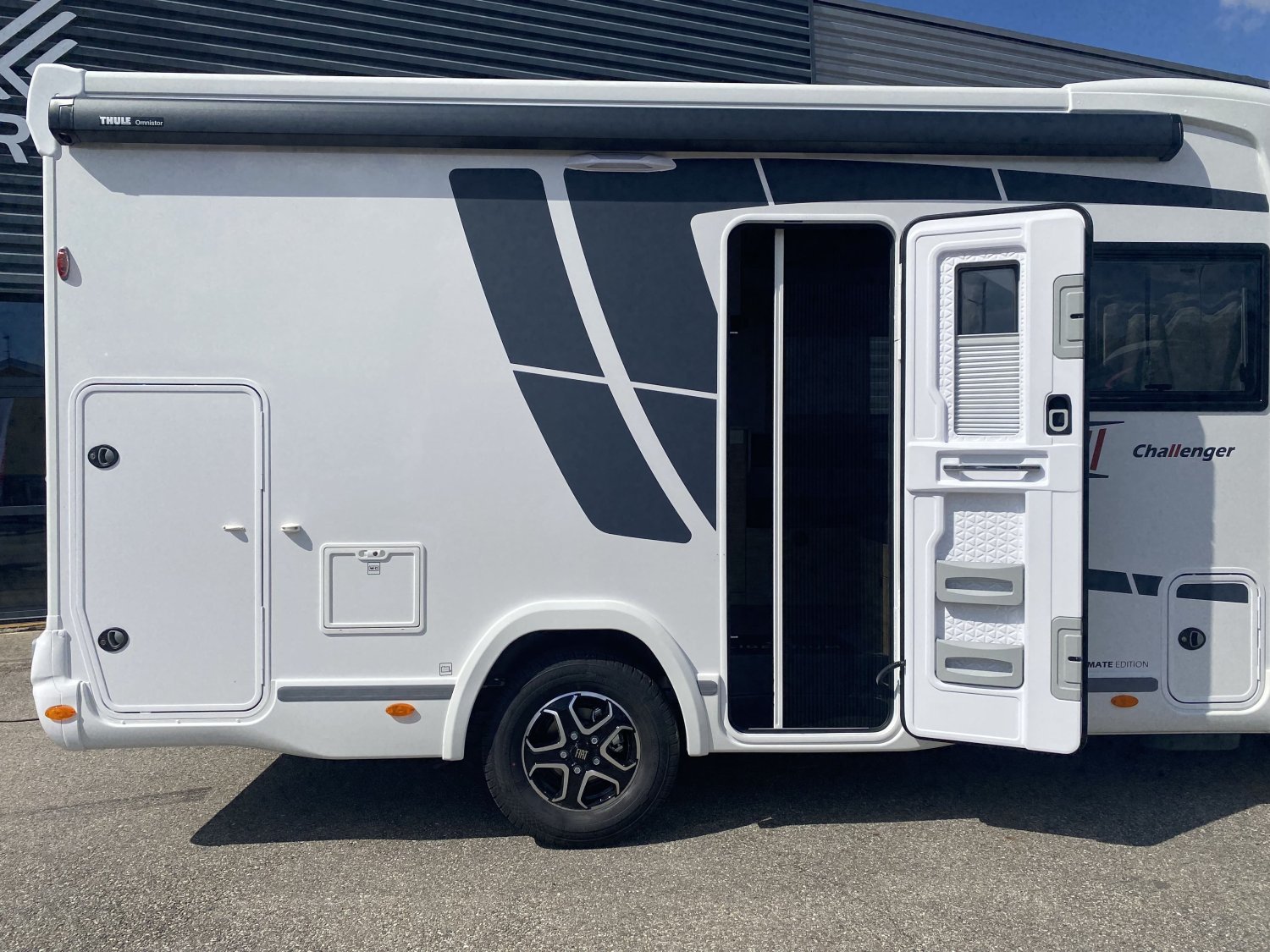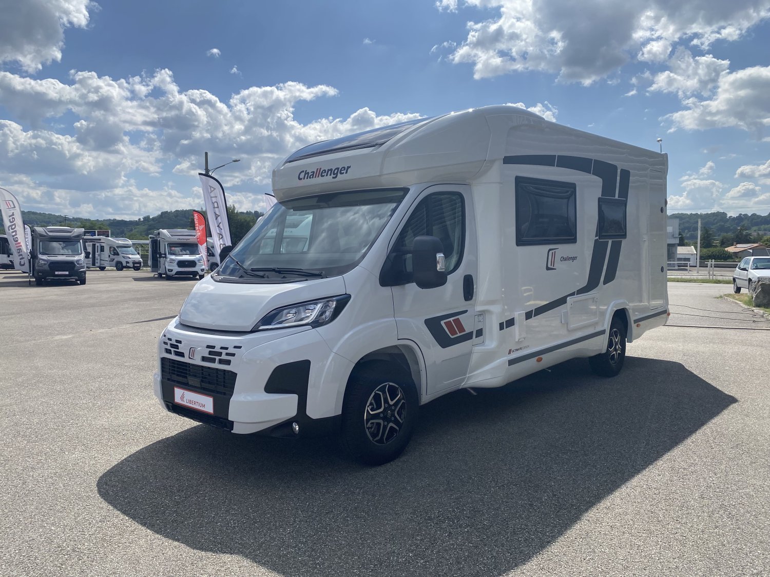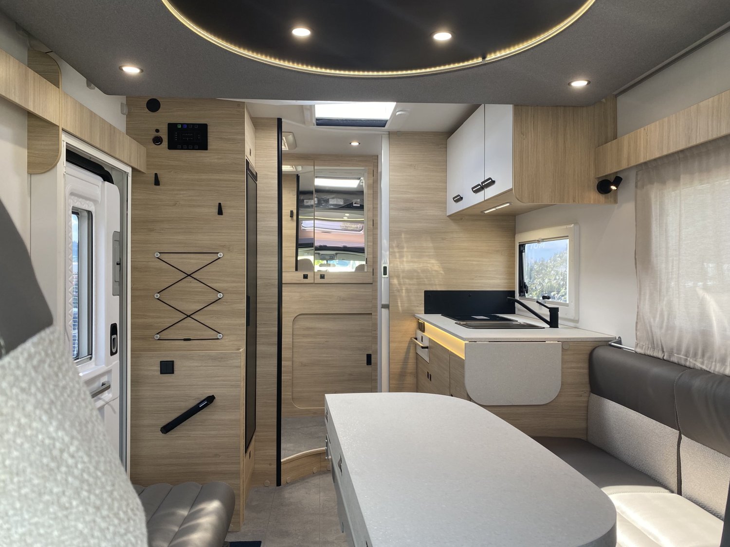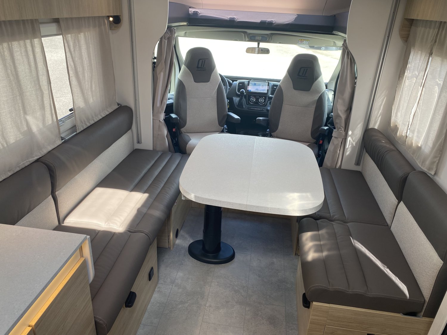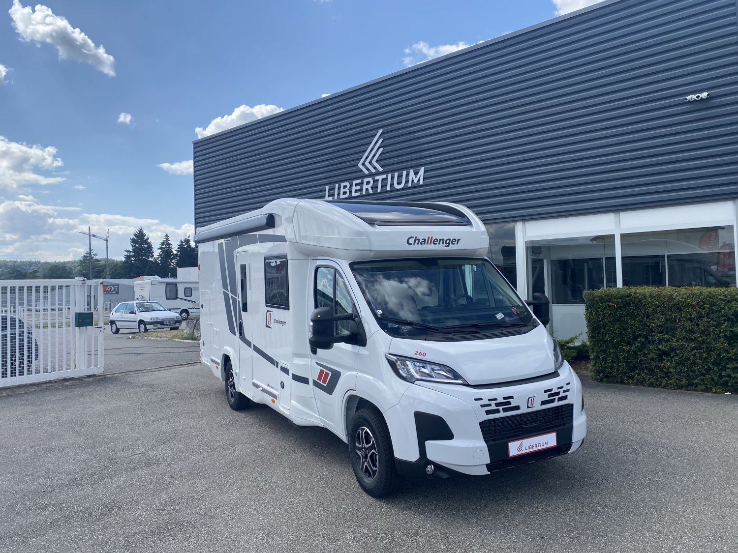 Conçu pour les amoureux d'espace et de grands rangements. Le modèle 260 de chez Challenger est un profilé de moins de 7mètres avec lit de pavillon en 160cm et qui intérieurement a tout d'un grand puisqu'on y retrouve un immense salon en face à face, une très grande cuisine avec frigo congélateur, un dressing impressionnant, une véritable cabine de douche indépendante du toilette et sans oublier une très belle soute garage.