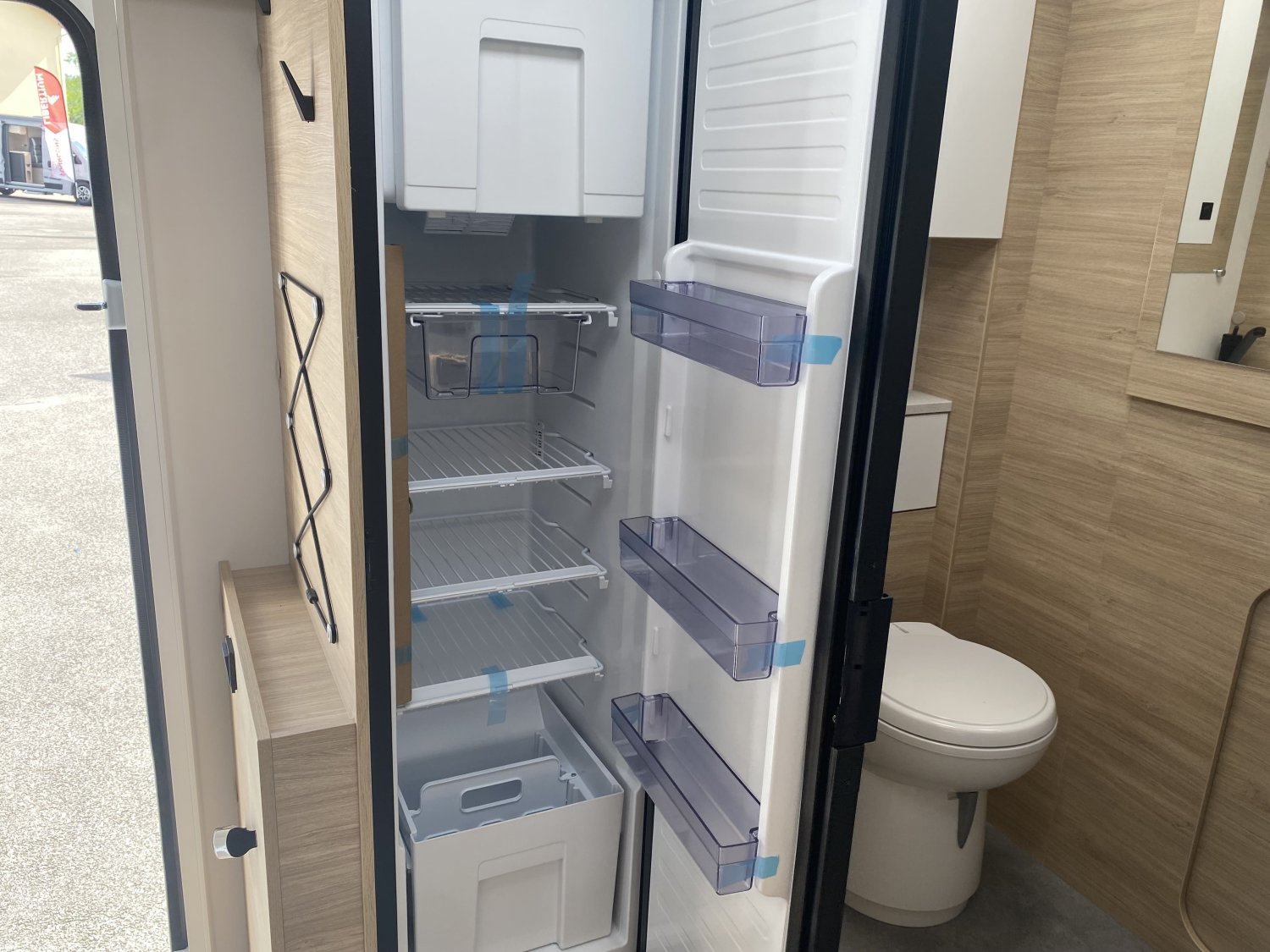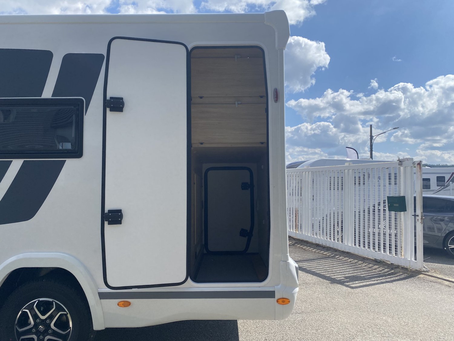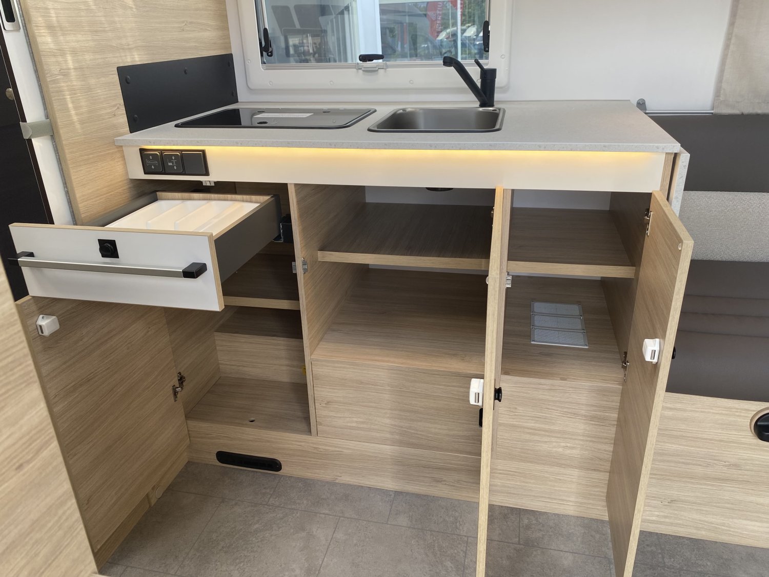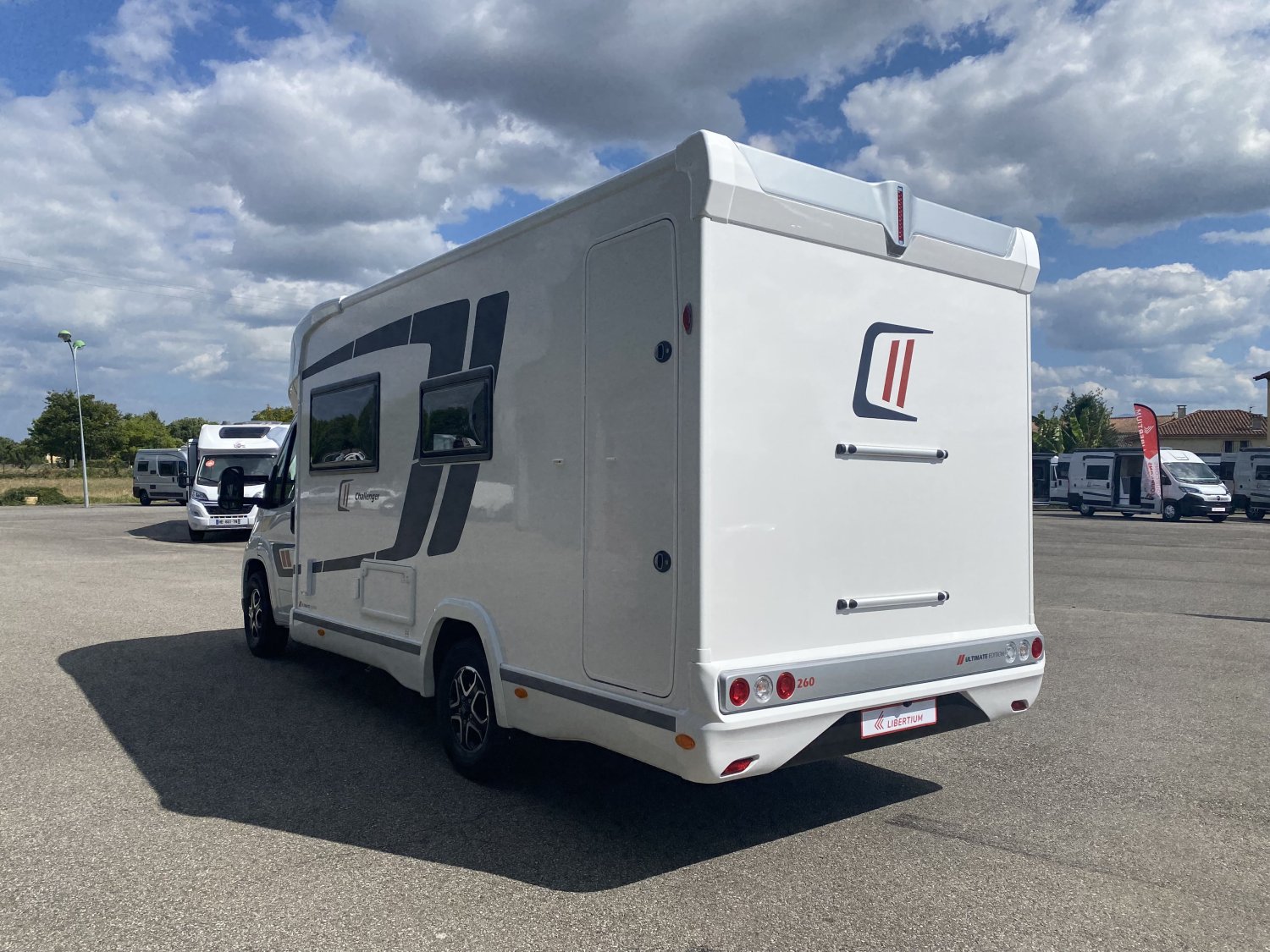 Conçu pour les amoureux d'espace et de grands rangements. Le modèle 260 de chez Challenger est un profilé de moins de 7mètres avec lit de pavillon en 160cm et qui intérieurement a tout d'un grand puisqu'on y retrouve un immense salon en face à face, une très grande cuisine avec frigo congélateur, un dressing impressionnant, une véritable cabine de douche indépendante du toilette et sans oublier une très belle soute garage.
