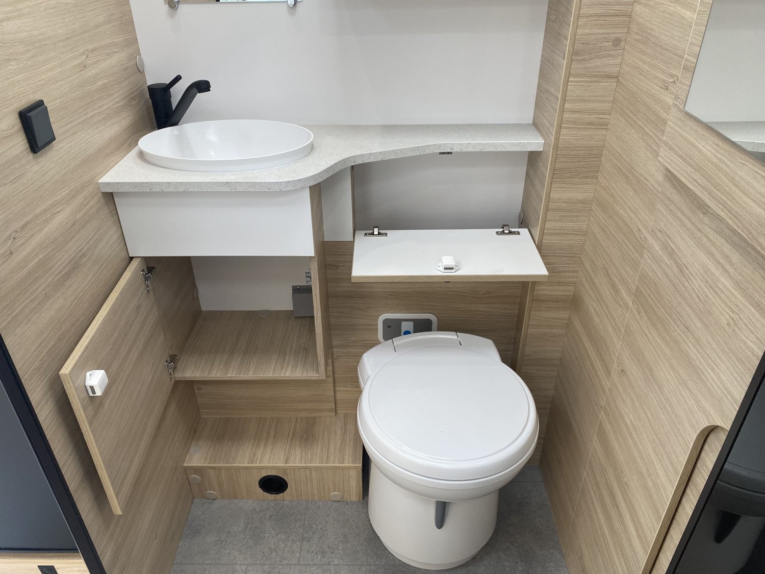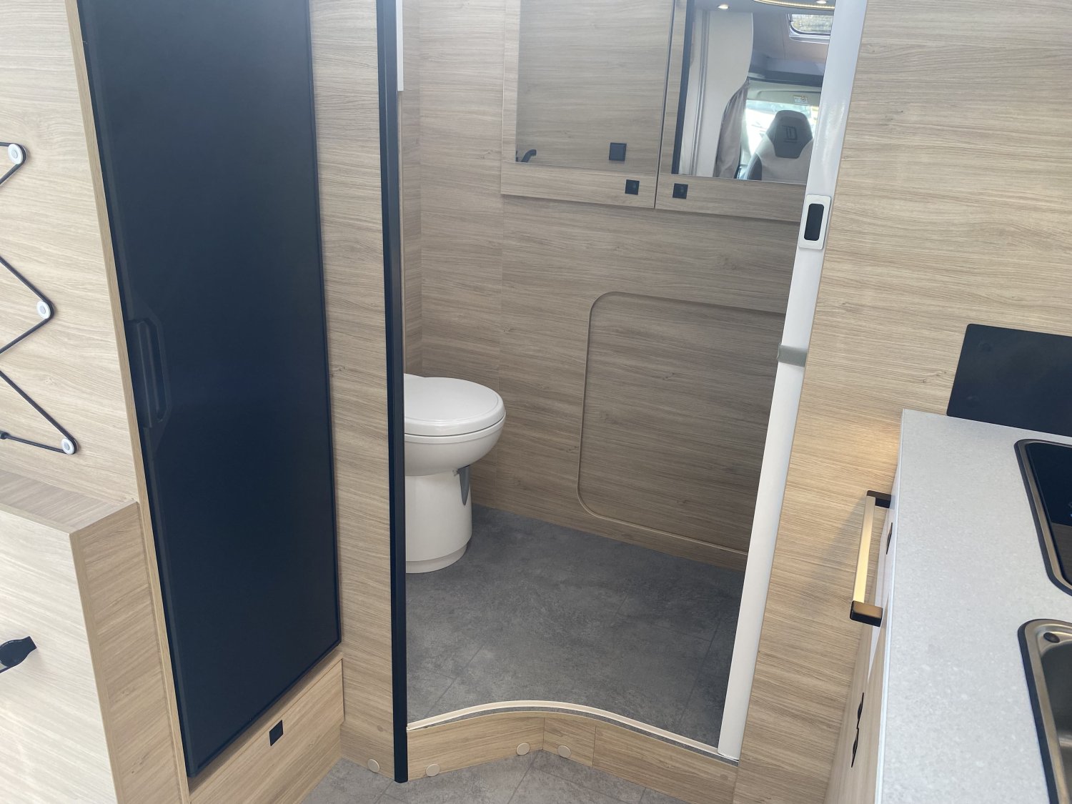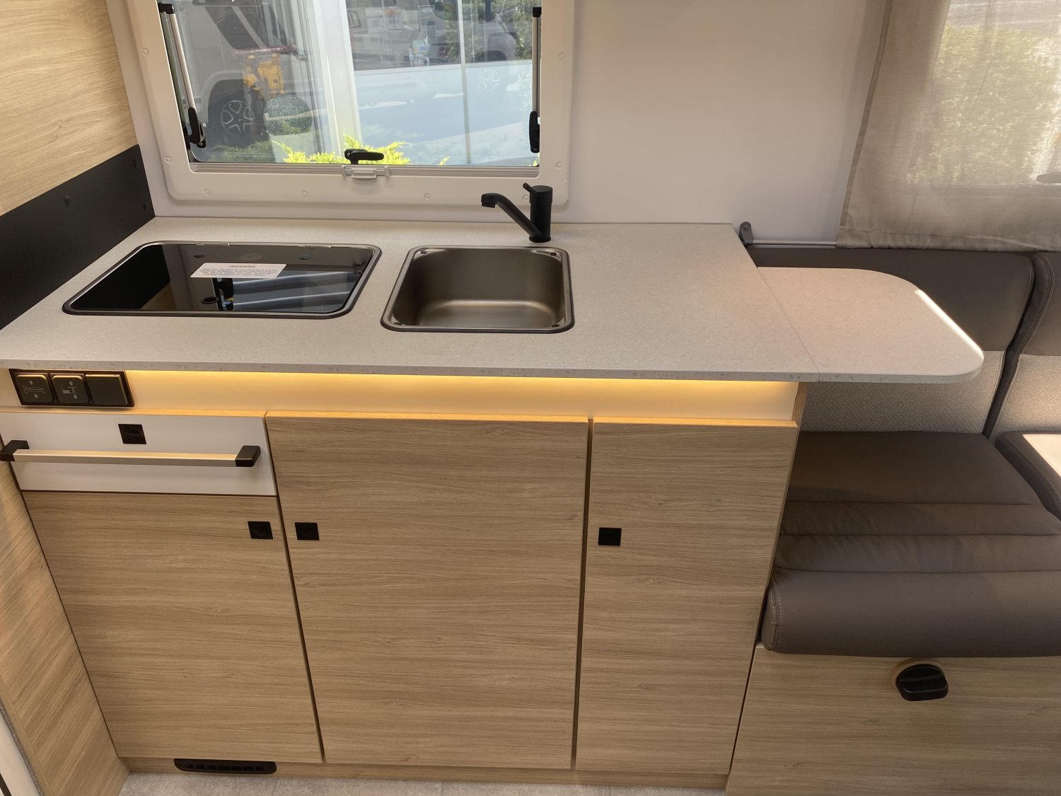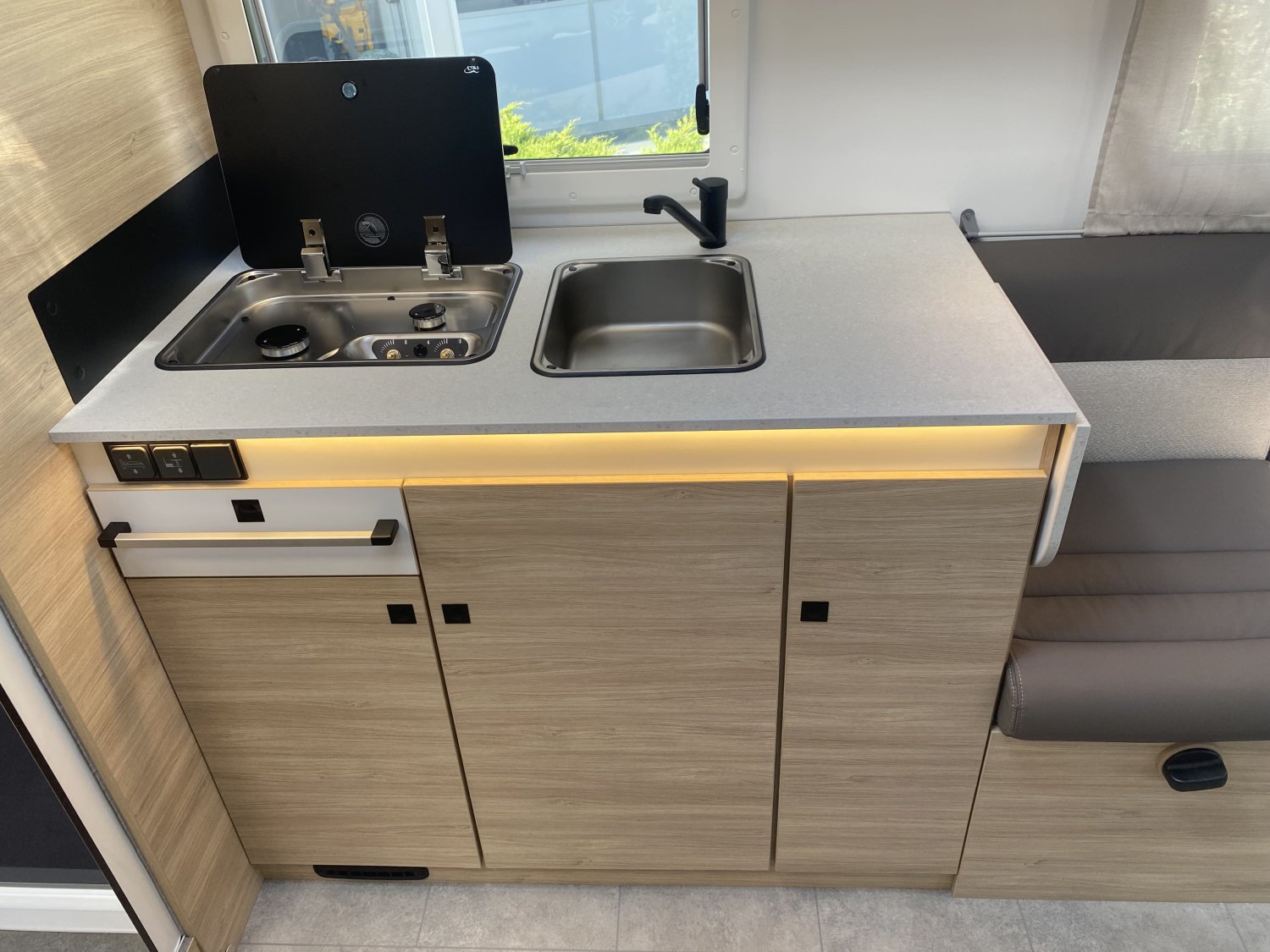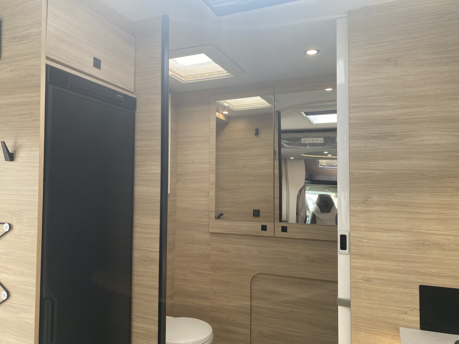 Conçu pour les amoureux d'espace et de grands rangements. Le modèle 260 de chez Challenger est un profilé de moins de 7mètres avec lit de pavillon en 160cm et qui intérieurement a tout d'un grand puisqu'on y retrouve un immense salon en face à face, une très grande cuisine avec frigo congélateur, un dressing impressionnant, une véritable cabine de douche indépendante du toilette et sans oublier une très belle soute garage.