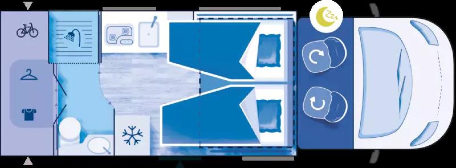 Capteur pression des pneus, Reconnaissance des panneaux de limitateur de vitesse, Prise de gaz extérieure, Prise d'eau extérieure, Lit de pavillon, Boite de vitesses automatique 8 rapports, Jantes alliage 16" noires, Rétroviseurs électriques dégivrants, Régulateur / limiteur de vitesse, Porte d'entrée avec fermeture centralisée porteur cellule, Chauffage sur carburant utilisable en roulant, Feux et essuie glaces automatiques, Double airbag, Climatisation automatique en cabine, Caméra de recul, système multimédia, commandes au volant, Store extérieur, Panneau solaire, Moustiquaire de porte, Alerte anti-collision, controle de franchissemant de ligne