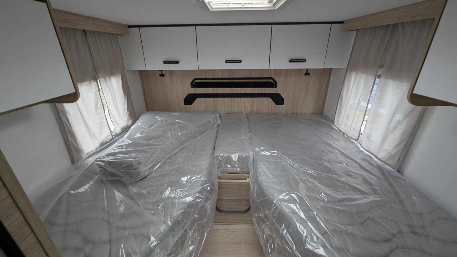 Jantes alliage noires 16", Store intérieur cabine, Store extérieur-auvent, Moustiquaire de porte, Climatisation manuelle de cabine, Extension couchage lits jumeaux, Toit panoramique cabine ouvrant, Pare-chocs avant peint, Porte d'entrée avec fermeture centralisée, Traction +, Chauffage sur carburant utilisable en roulant, Panneau solaire 140W, Régulateur/limiteur de vitesse, Lits jumeaux, Lit de pavillon électrique, Double cloison de séparation, Porte cellule XL avec fenêtre, Prises USB/USB-C