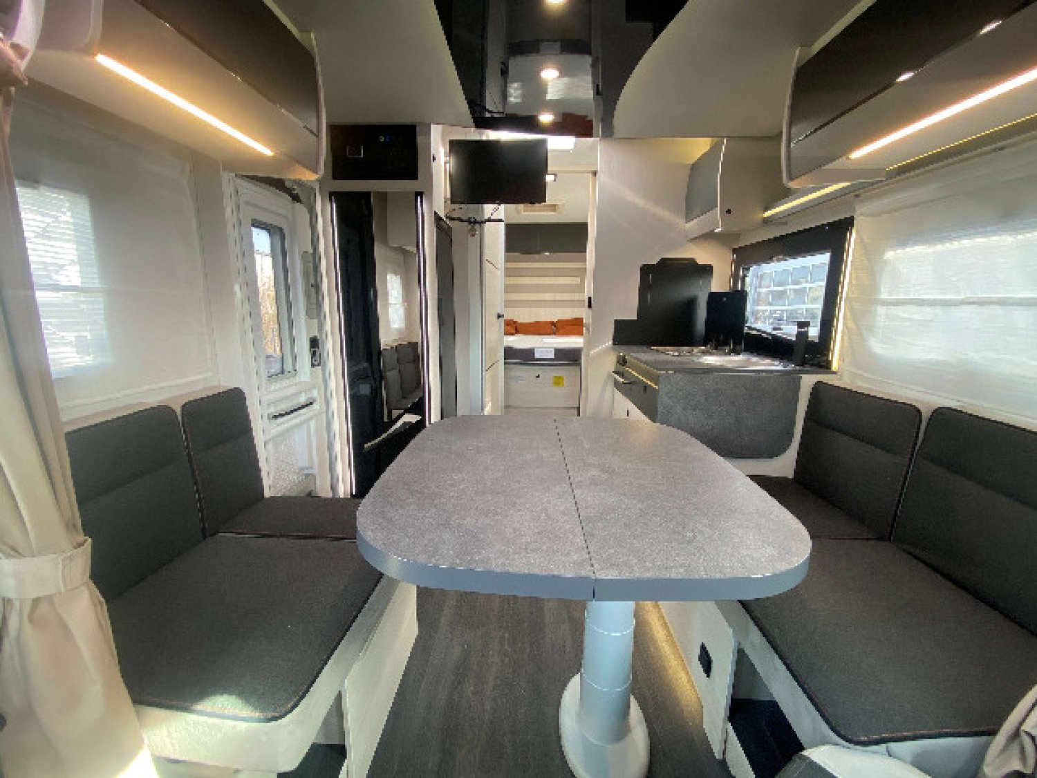 AIDE AU MAINTIEN DE VOIE, ALERTE ANTI-COLLISION, ALERTE FRANCHISSEMENT DE LIGNE, AMB. MOBILIER SIROCCO, CAILLEBOTIS DE DOUCHE, CHAUFFAGE SUR CARBURANT A CDE DIGITALE, CLIMATISATION MANUELLE EN CABINE, DOUBLE AIRBAG, DOUCHETTE EXTERIEURE, DRESSING AVEC TIROIRS, FENETRES DOUBLE VITRAGE AVEC COMBINE STORES MOUSTIQUAIRE, FEUX ANTIBROUILLARDS, FEUX ET ESSUIS GLACES AUTOMATIQUE, FORD TRANSIT 2L 170CV, FREINAGE D'URGENCE AUTOMATIQUE, JANTES ALLIAGE 16" NOIRES, LANTERNEAU PANORAMIQUE, MOUSTIQUAIRE DE PORTE, NIVEAU DE FINITION PREMIUM, PARE-CHOCS AVANT PEINT, PRISE DE GAZ EXTERIEURE, PRISES USB, REFRIGERATEUR 141L, REGULATEUR/LIMITATEUR DE VITESSE, SELLERIE EXCLUSIVE, STOP & START