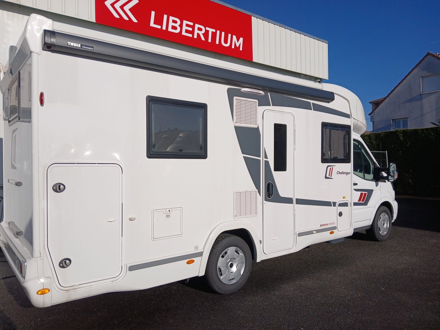 A saisir !!! Superbe Chalenger 380 Break Edition. Le modèle familial par excellence !!! Voyager à 5, c'est bien, mais encore faut-il pouvoir dormir à bord. Afin d'offrir le nombre adéquat de couchages, Challenger a joué d'audace. On trouve donc à bord de ce profilé un grand lit double de pavillon, d'une largeur de 160cm. Commandé électriquement, il peut être utilisé à différentes hauteur, selon que l'on souhaite utiliser le lit de dînette (130 x 195cm). Pour le disposer en position basse, on sollicitera alors la table télescopique, à commande électrique elle aussi. A l'arrière, nous trouvons des lits superposés d'un genre nouveau. La couchette supérieure peut effectivement être escamotée au plafond, ou disposée à la hauteur de votre choix. Tandis que la couchette basse est réglable en hauteur, de manière à faire évoluer le volume de la soute. Ce lit bas, disposé sur des vérins, cache aussi quelques rangements. De petits coffres bienvenus qui répondent au concept Easy Box mis au point par Challenger. Le 380 est unique sur le marché et bouscule les codes du camping-car familial par son système DUOBED Chauffage sur le carburant pour une meilleure autonomie, parfait pour partir en hiver. Dimensions couchages : dinette 130 x 195 pavillon 160 x 190 couchette inférieur 81 x 200 supérieure 74 x 190