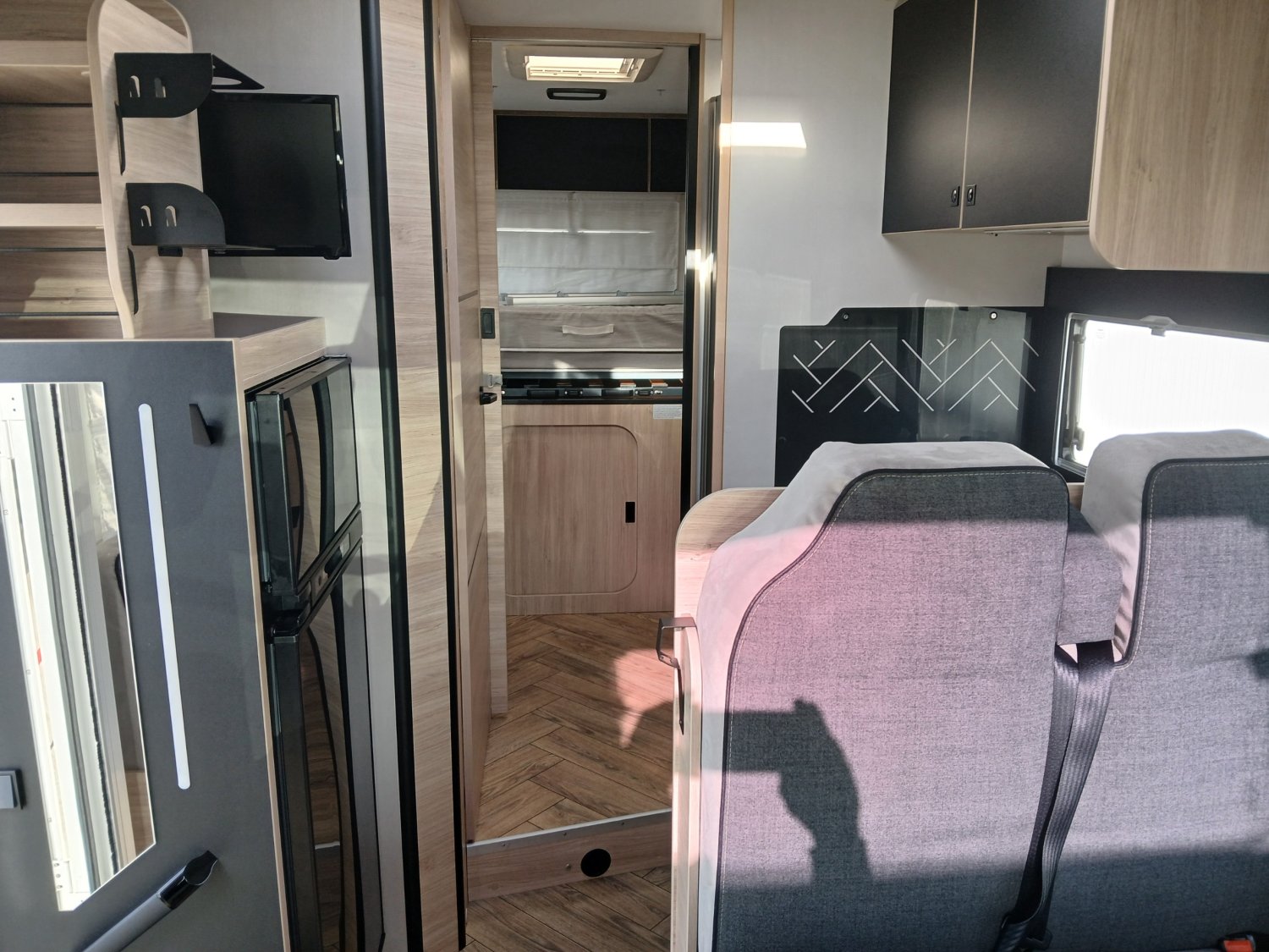Traction +, Caillebotis de douche, Chauffage sur carburant utilisable en roulant à commande dig, Climatisation manuelle de cabine, Compléments couchage lits jumeaux, Double airbag, Feux antibrouillards, Fixations Isofix, Hill Descent control, Jantes acier avec enjoliveurs 16'' gris, Kit pose 2ème batterie, Moustiquaire de porte, Prise de gaz extérieure, Rétroviseurs électriques dégivrants, Store extérieur, Store intérieur cabine, ESP, Panneau solaire, Pare-chocs avant peint, Douchette extérieure, Régulateur / limiteur de vitesse