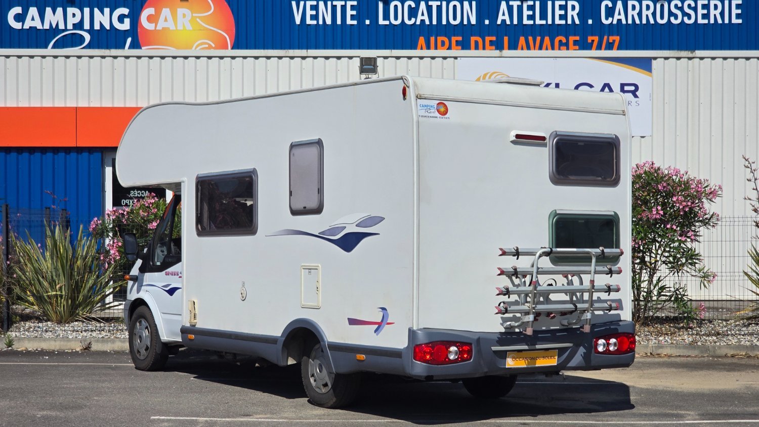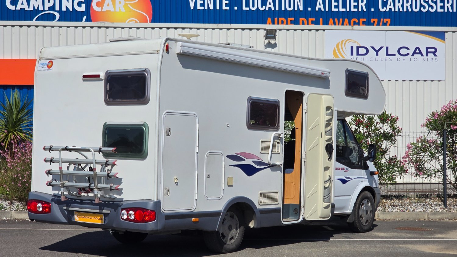 Info sur la société: parc de vente, location, magasin d'accessoires atelier de réparation, carrosserie + cabine spéciale camping-car, aire de lavage 24h/24h. 5 000m2 pour mieux vous recevoir !!!