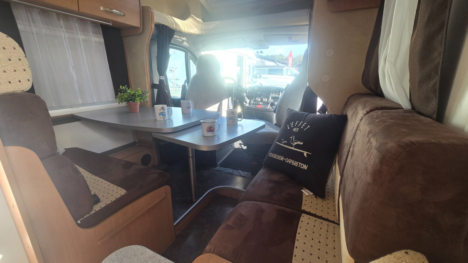 Voici un magnifique camping-car profilé fabriqué par challenger dispose de 5 places carte grise, 5 couchages avec lit sur soute, lit pavillon, lit dînette. Porteur fiat 2.3 128 ch