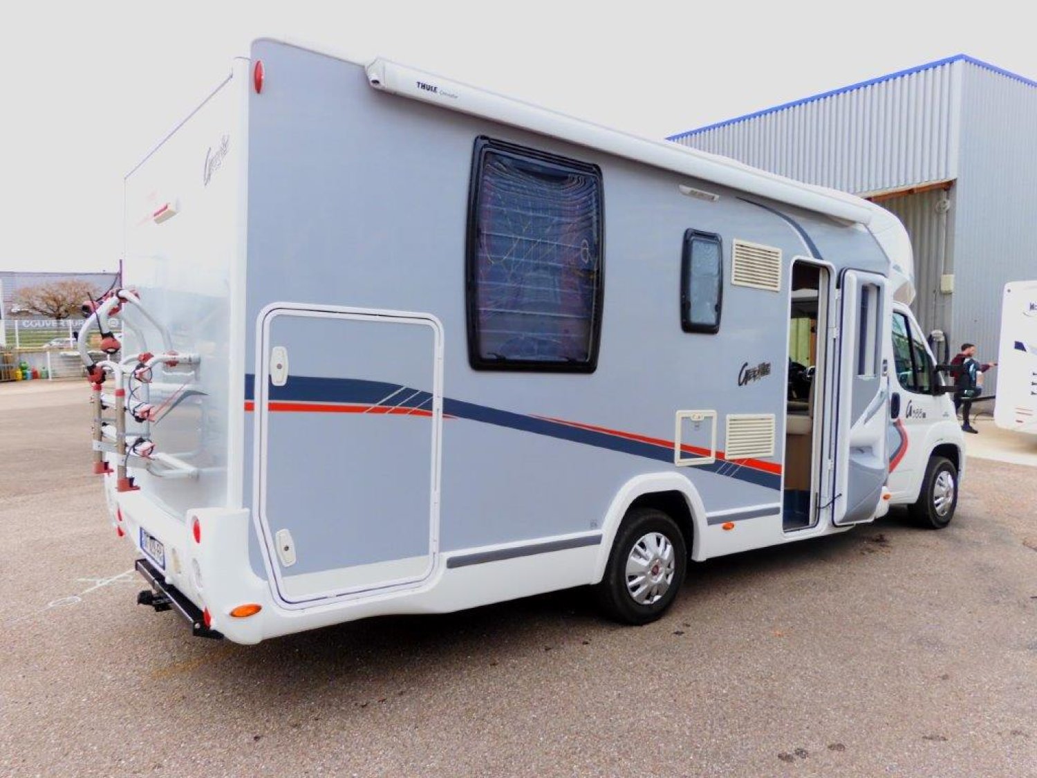 RADIO, TV CONNECTÉE - ANTENNE TNT, STORE EXTÉRIEUR, CAMÉRA DE RECUL, MOUSTIQUAIRE DE PORTE, PANNEAU SOLAIRE, BOITE MANUELLE 6V, ATTELAGE, PORTE VÉLOS (pour 3), CLIM CABINE