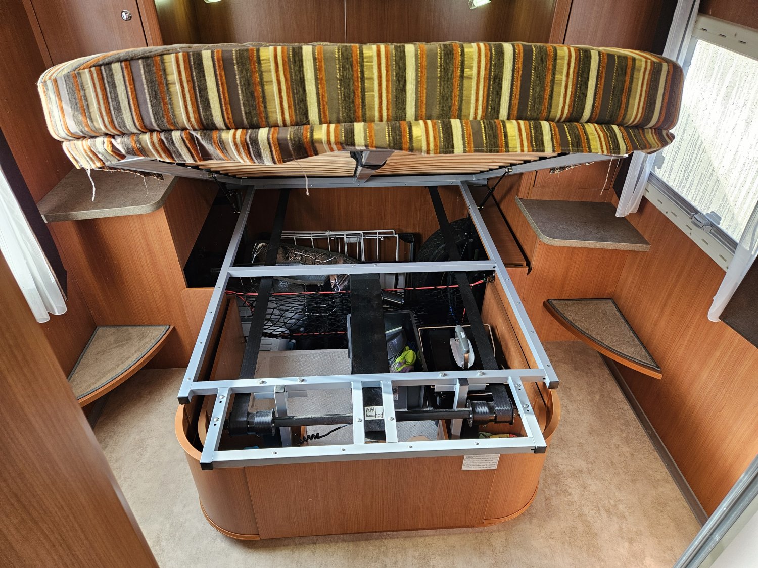 Une climatisation cabine, une caméra de recul couleur, un store extérieur de 4m, un lave linge, un panneau solaire de 150 W et deux batteries cellule.