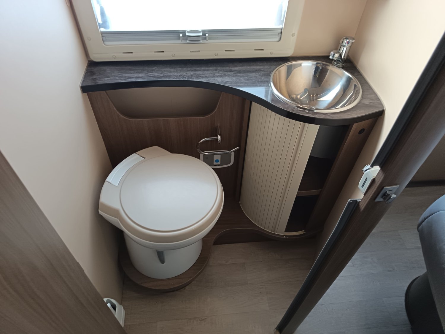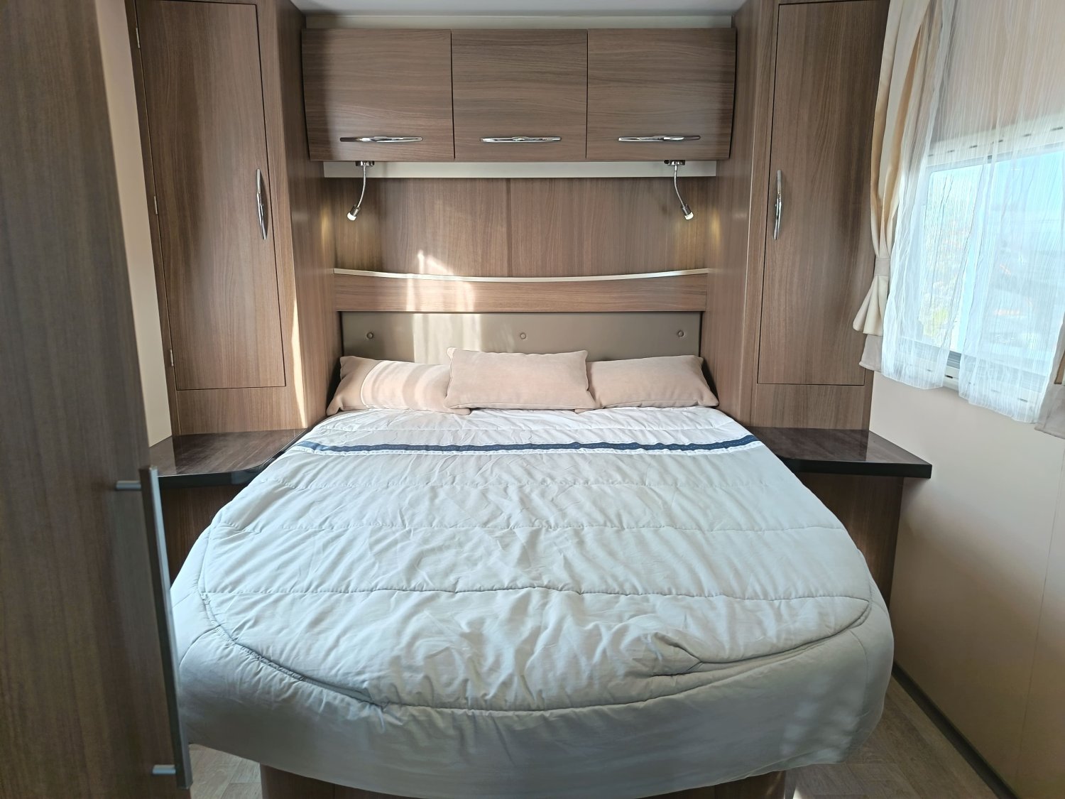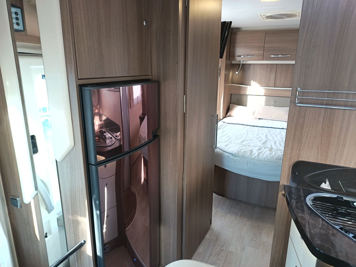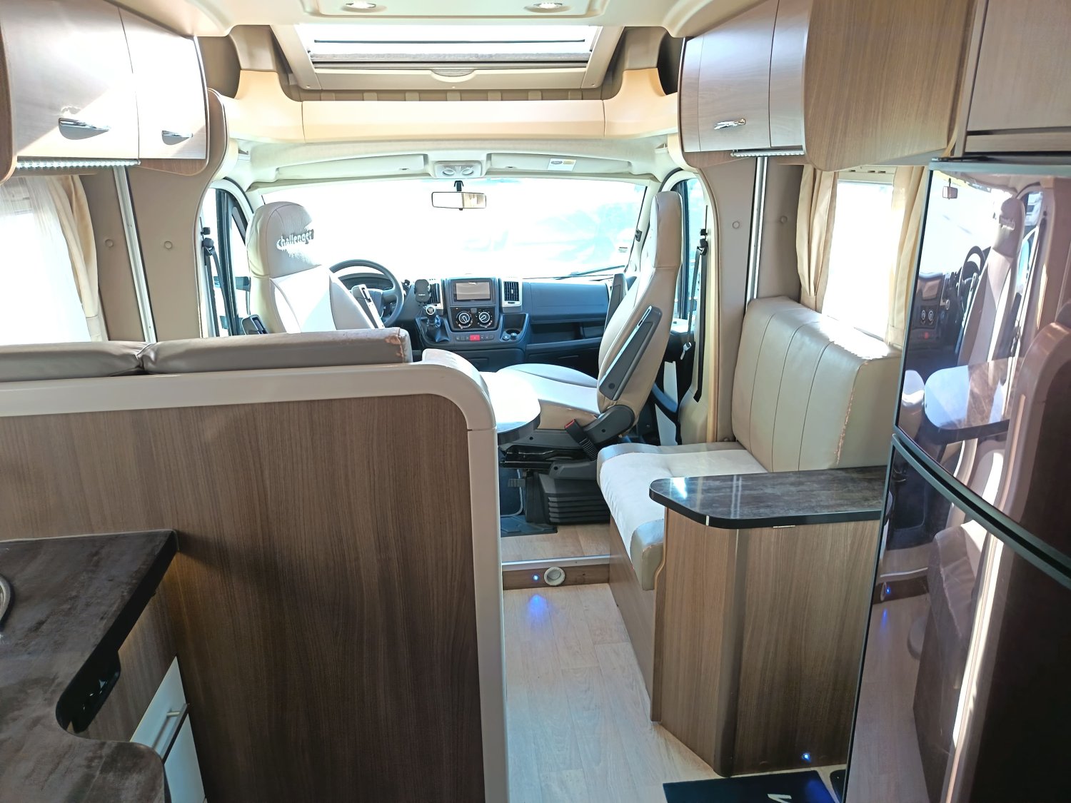 Profilé avec lit central et lit de pavillon électrique. Il dispose également d'une douche indépendante du toilette et d'un très grand salon. Faible kilométrage et équipement complet.