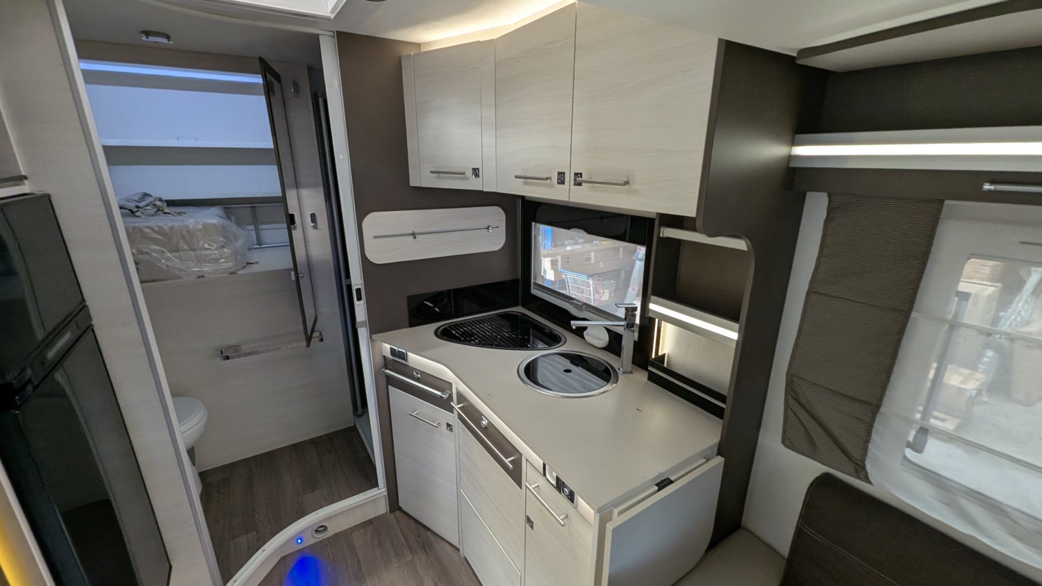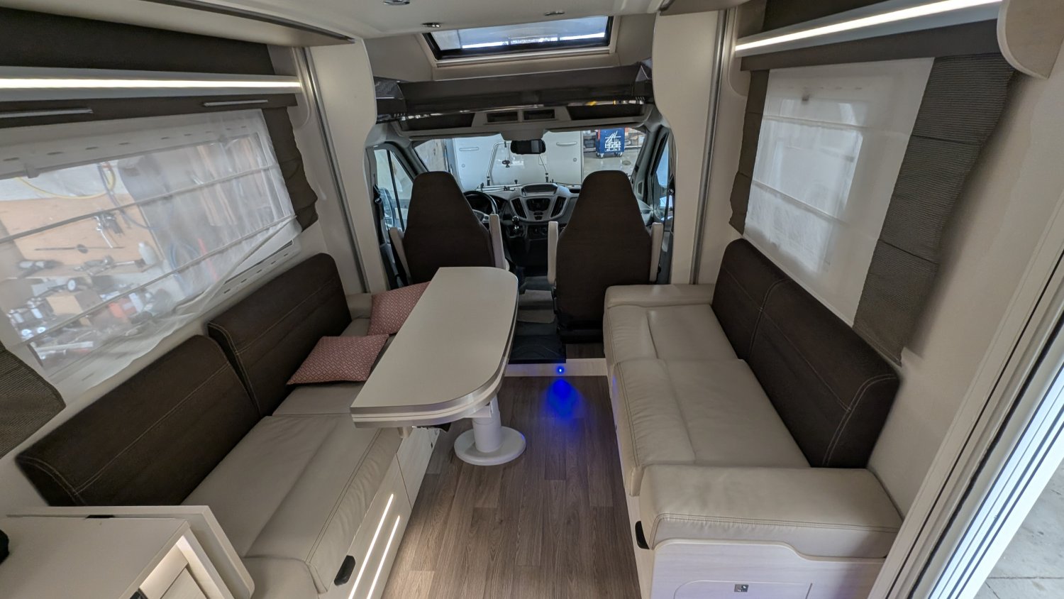 Autoradio Ford, Regulateur de vitesse, Climatisation manuelle de cellule, Grand refrigerateur, Phares antibrouillard, Chauffage utilsable en roulant, Store extérieur, Chauffage sur carburant, Antenne satellite automatique + TV, Stores occulatants en cabine, Panneau solaire, Caméra de recul, Lit de pavillon et table électriques