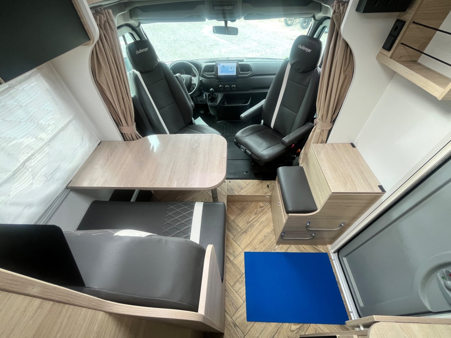 Le camping-car Challenger S 194 Étape Edition, construit sur la base fiable d’un Renault Master et équipé d’un moteur 2,0 litres de 145 chevaux, combine compacité et maniabilité avec seulement 6,24 mètres de long, tout en offrant un intérieur moderne et fonctionnel, prévu pour 4 personnes, dont l’implantation ingénieuse avec lit central et salon face-face assure à la fois confort de couchage, convivialité et optimisation de l’espace, faisant de ce modèle un compagnon de voyage idéal pour profiter de l’aventure avec sérénité et liberté.