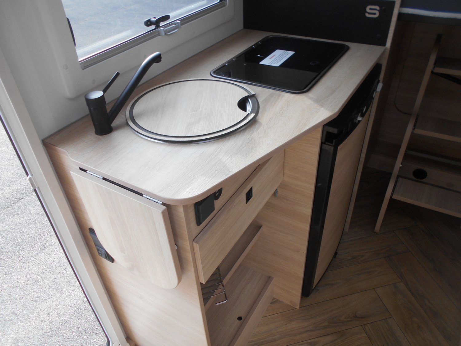 Rétroviseurs éléctriques, Climatisation manuelle de cabine, Complément couchage dinette, Double airbag, ESP, Kit pose 2ème batterie, Moustiquaire de porte, Panneau solaire, Roue de secours, éclairage extérieur porte d'entrée, Chauffage sur carburant utilisable en roulant, Store extérieur, Régulateur / limiteur de vitesse
