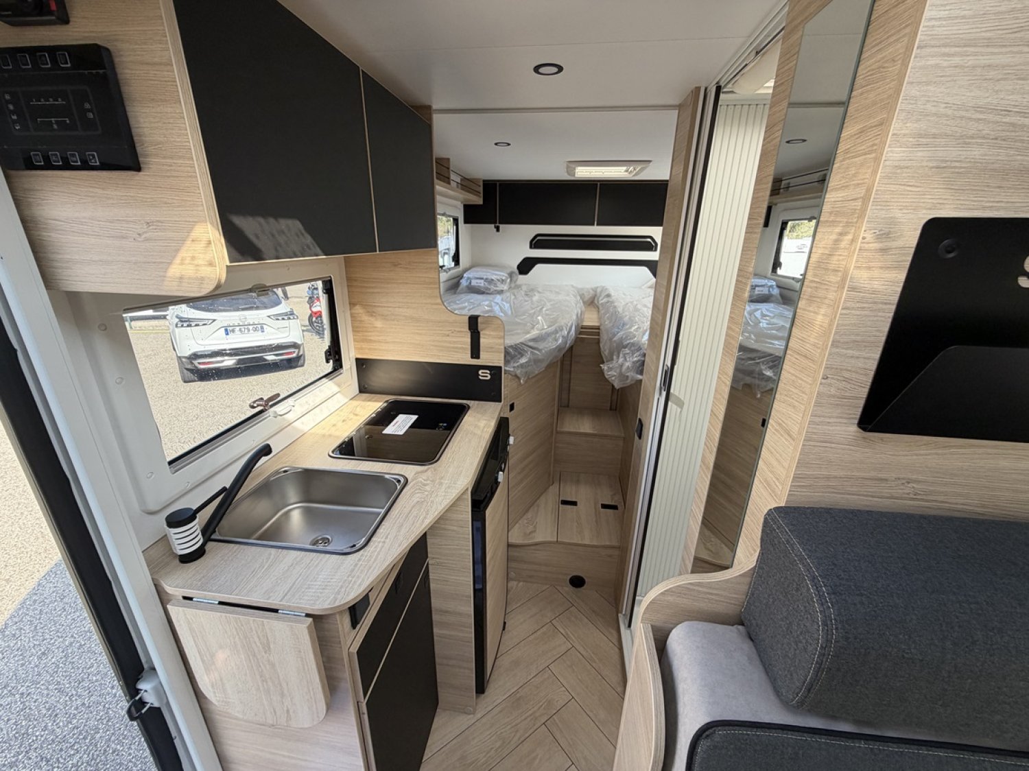 Store extérieur - auvent, panneau solaire 140W, moustiquaire de porte, stores intérieur cabine, complément matelas lits jumeaux, complément couchage dinette.