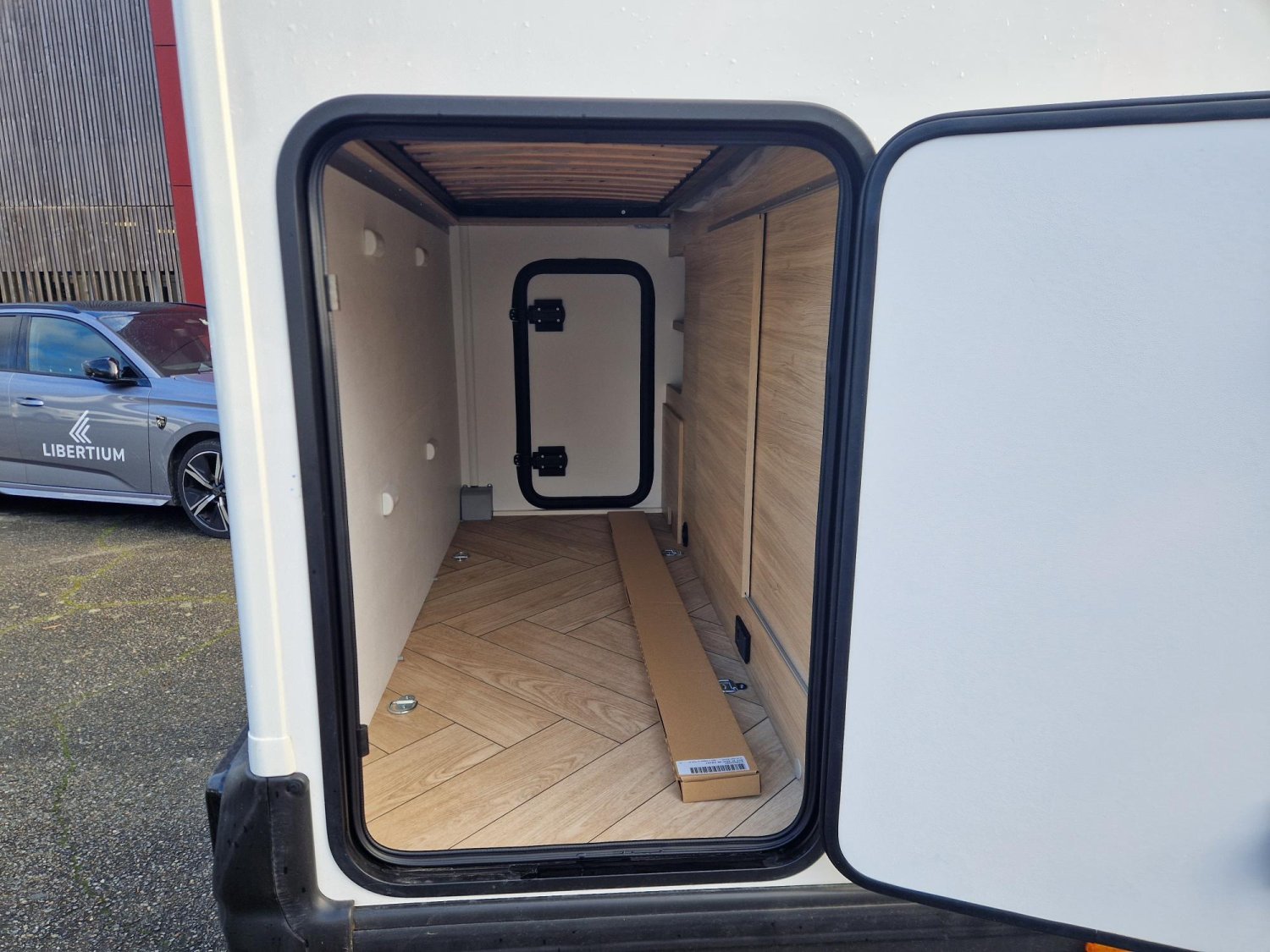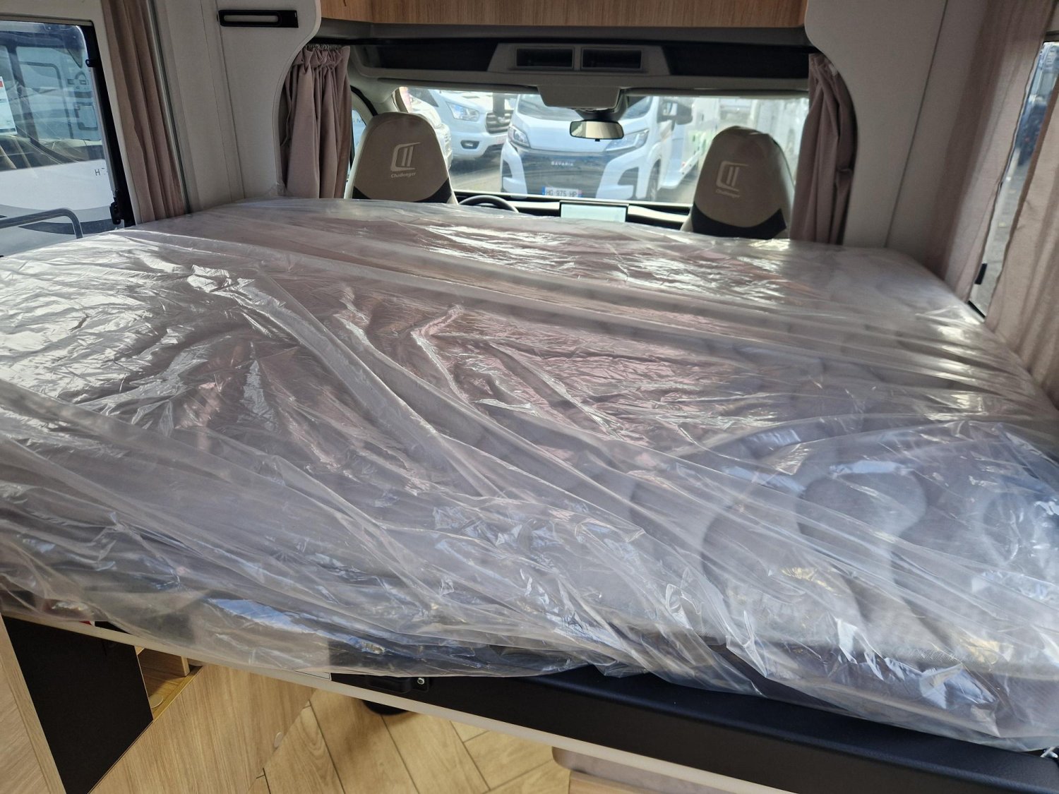Profilé étroit de marque leader avec lit transversal sur soute et lit de pavillon 2 places électriques. Bien équipé de série, sur une base Ford 165 CV en boite automatique.