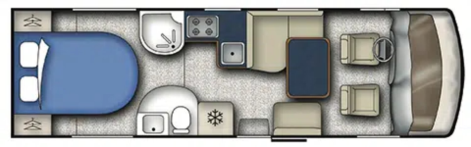 Chauffage / chauffe-eau Truma gasoil - Chauffage de route- grand Salon - - sièges confort pivotants ISERIE, réglables en hauteur - Occultation cabine coulissante plissée de série - Menuiserie forme galbée - poignées de meuble finition chrome– grand salon 5 places - Finition CERES - Grande soute traversante