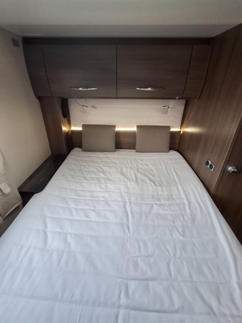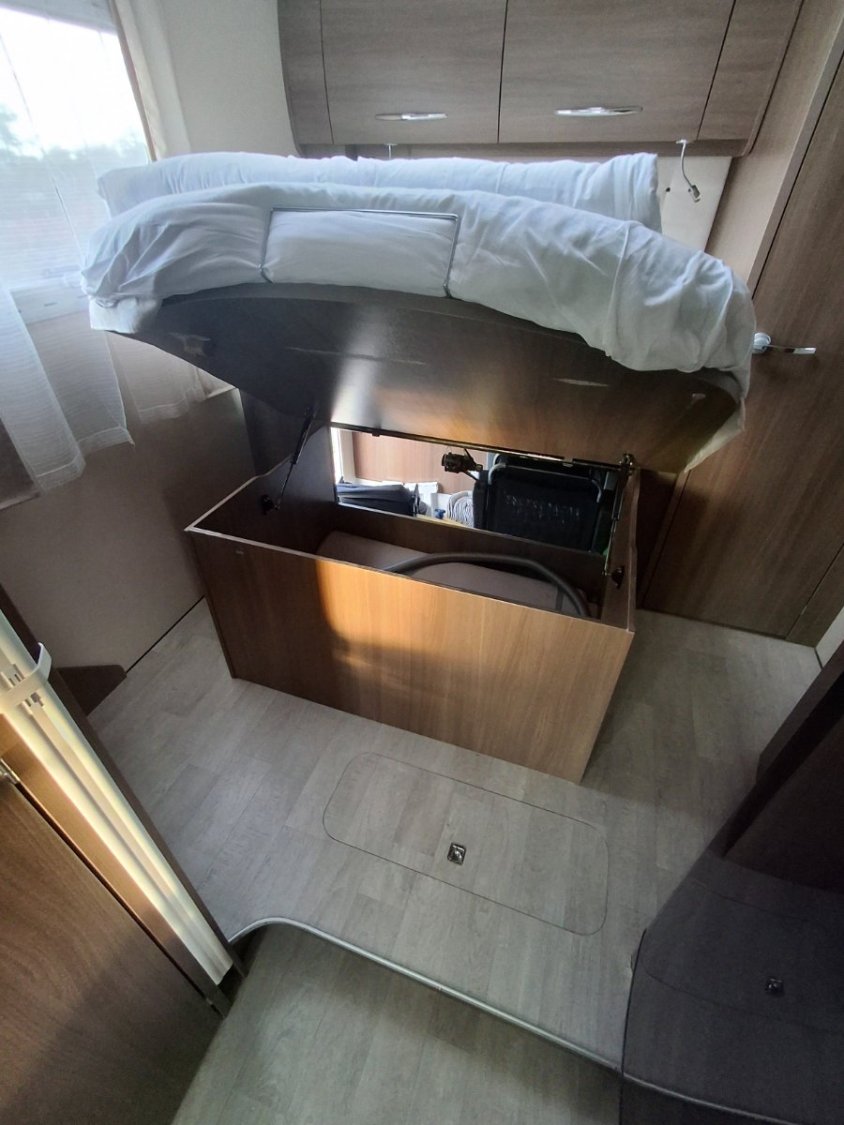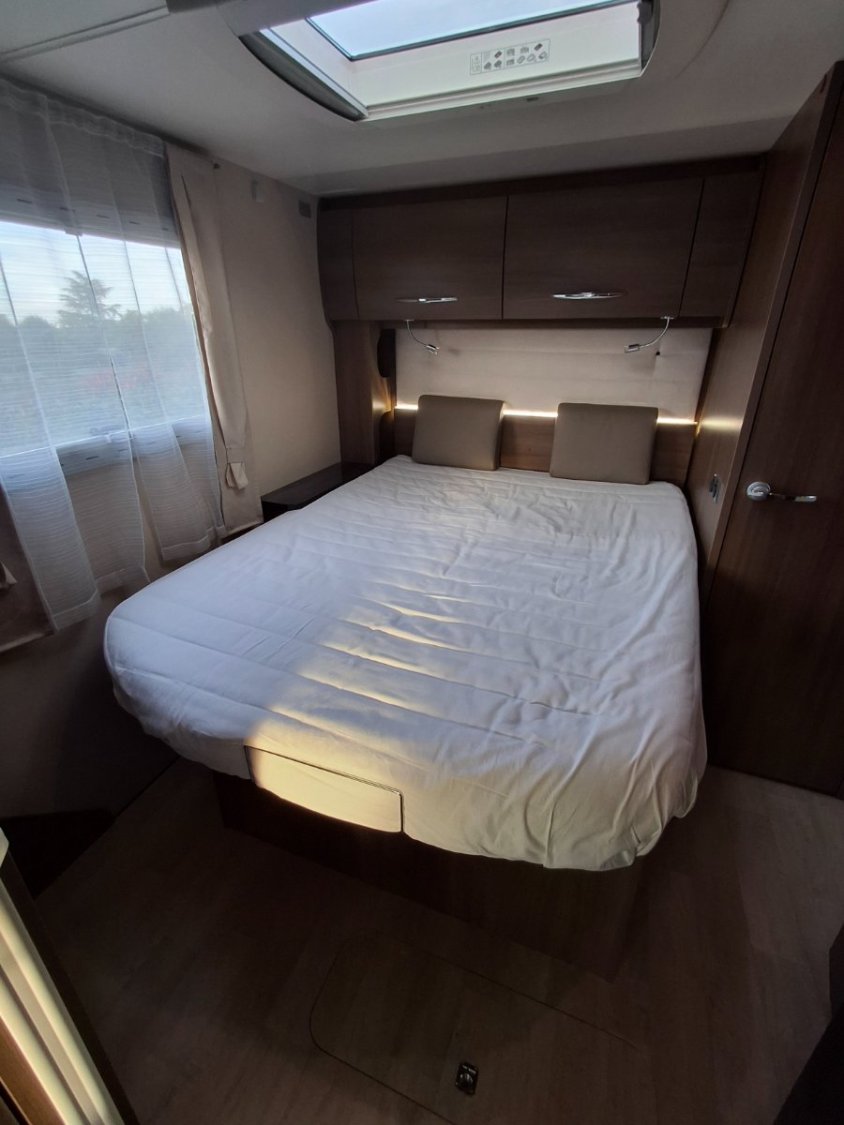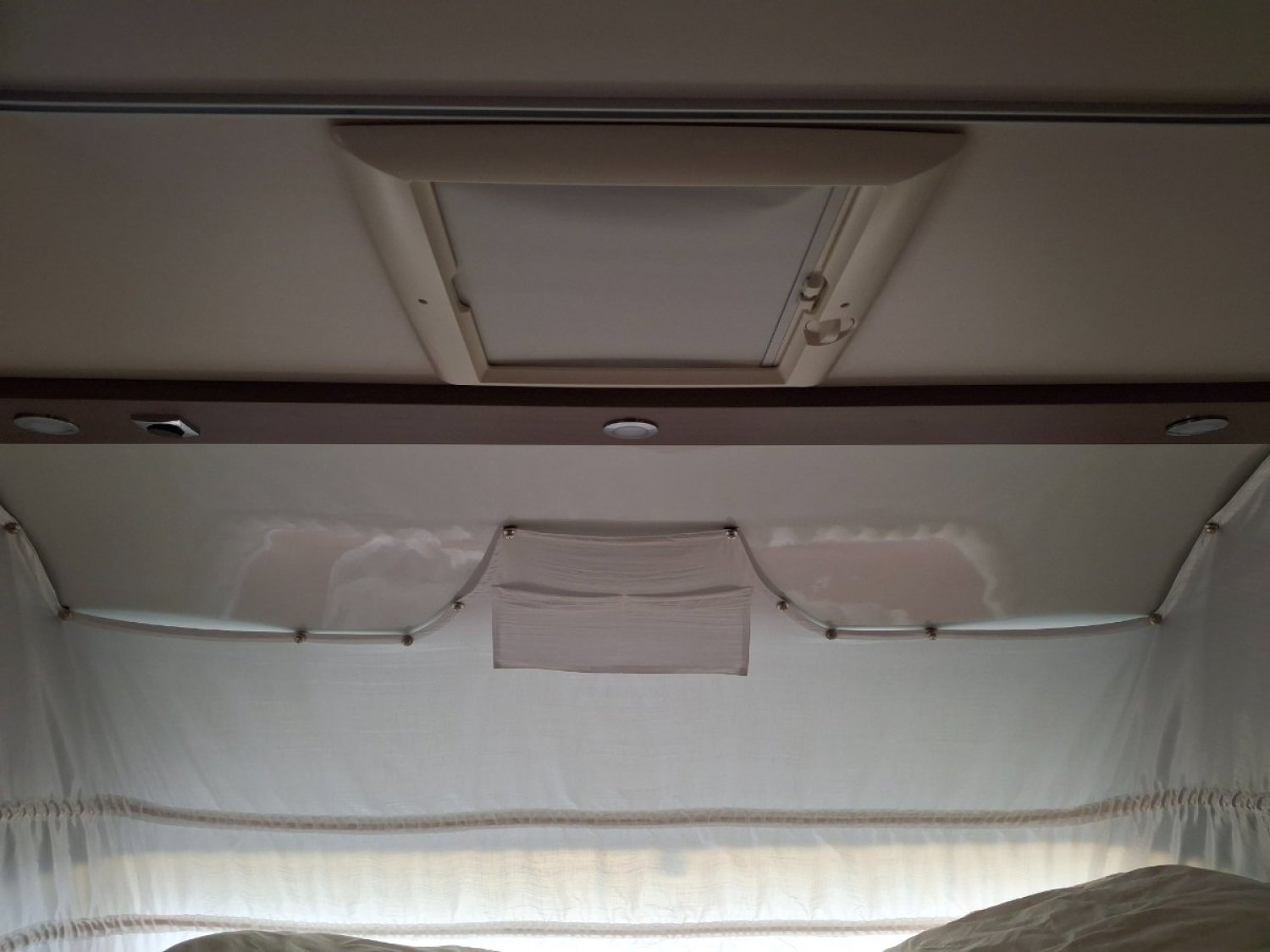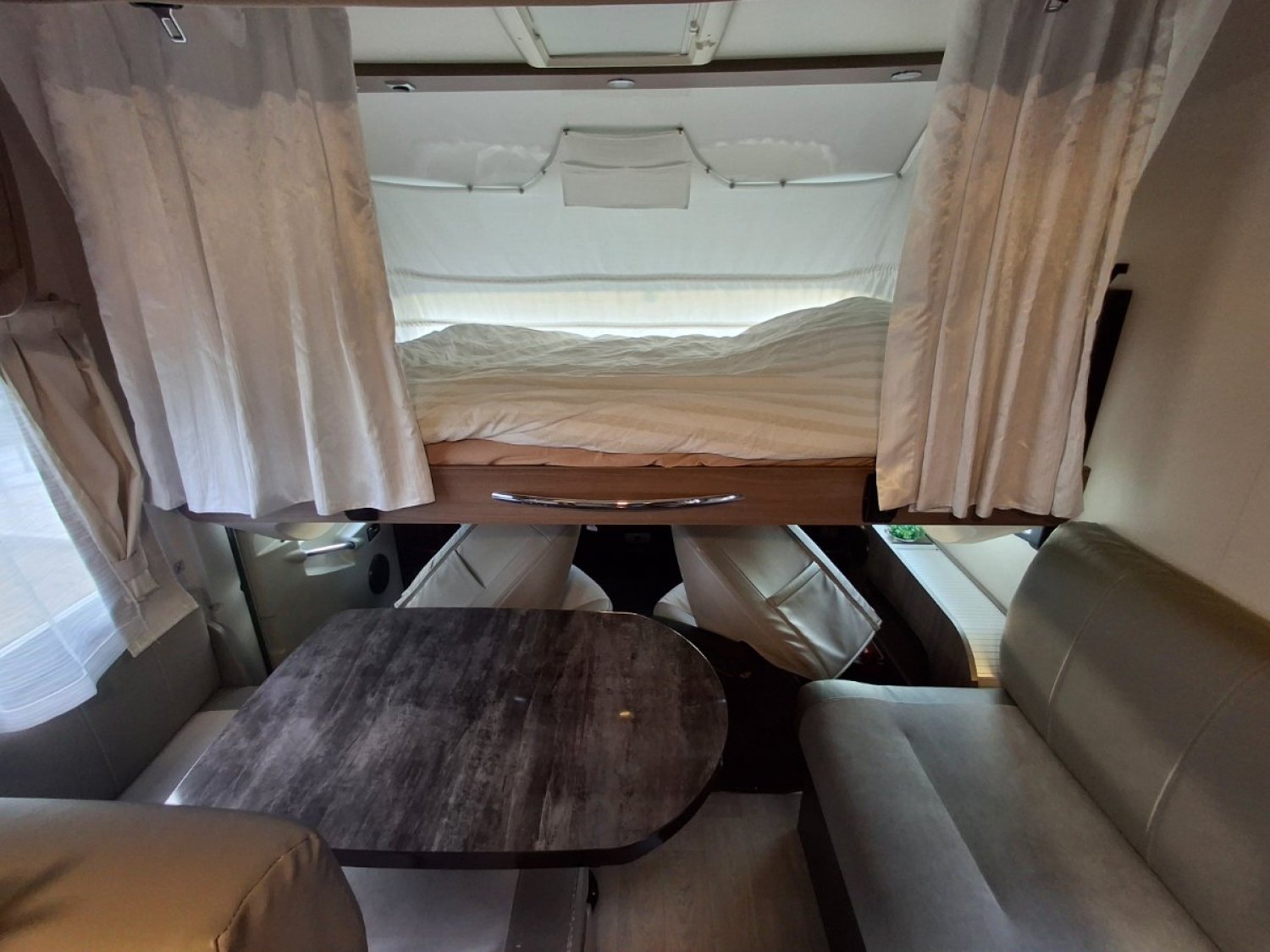 1 Lit cabine au dessus des sièges avant sans gêne pour la table et banquettes.