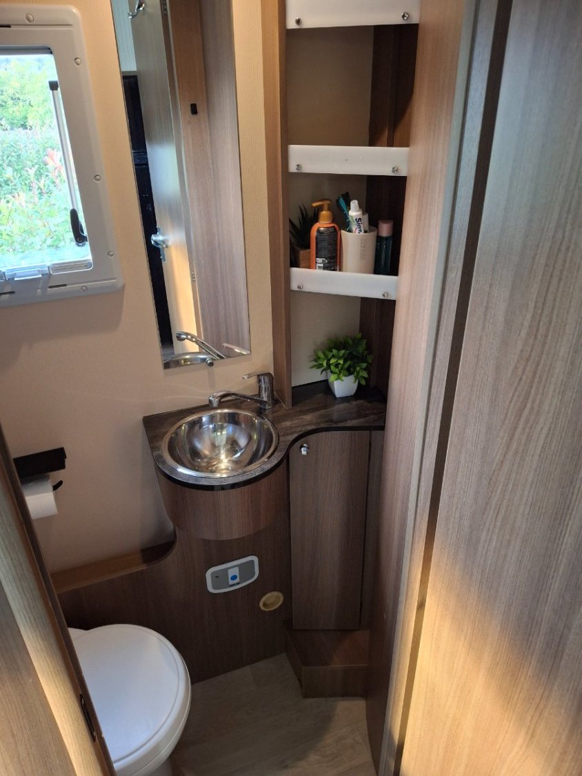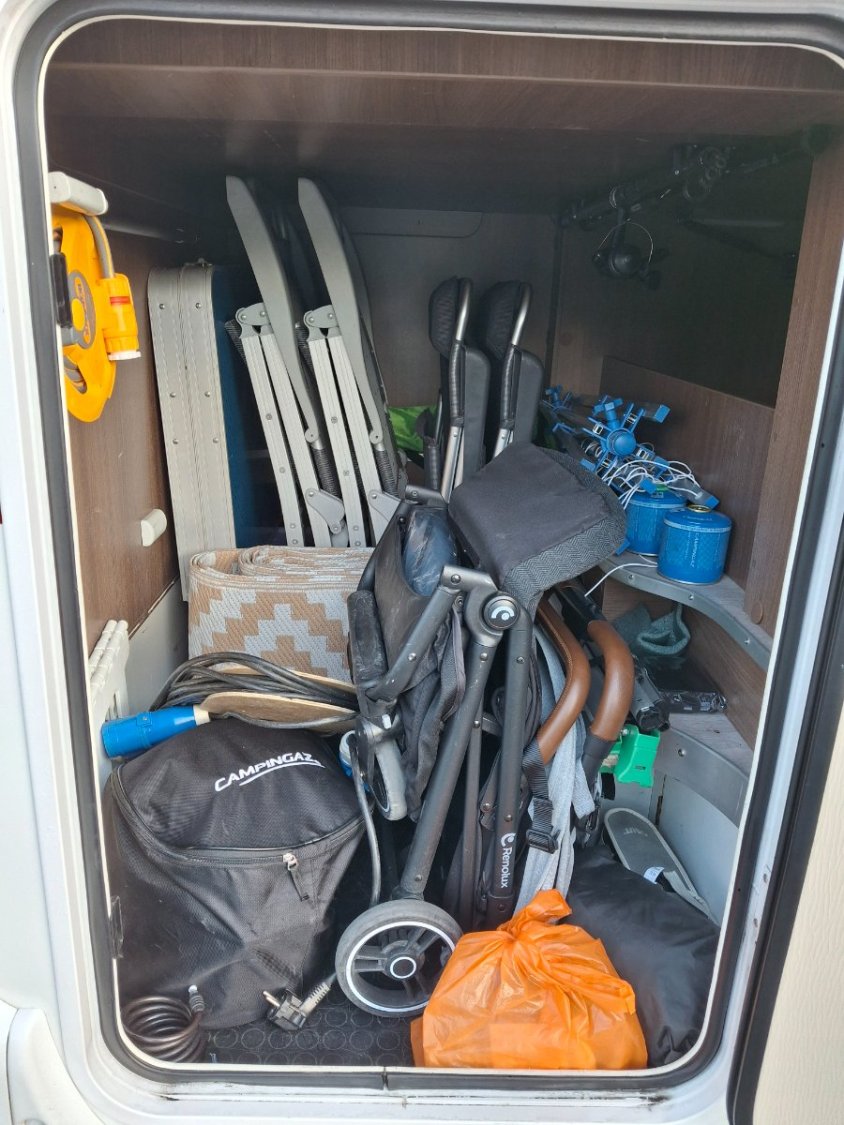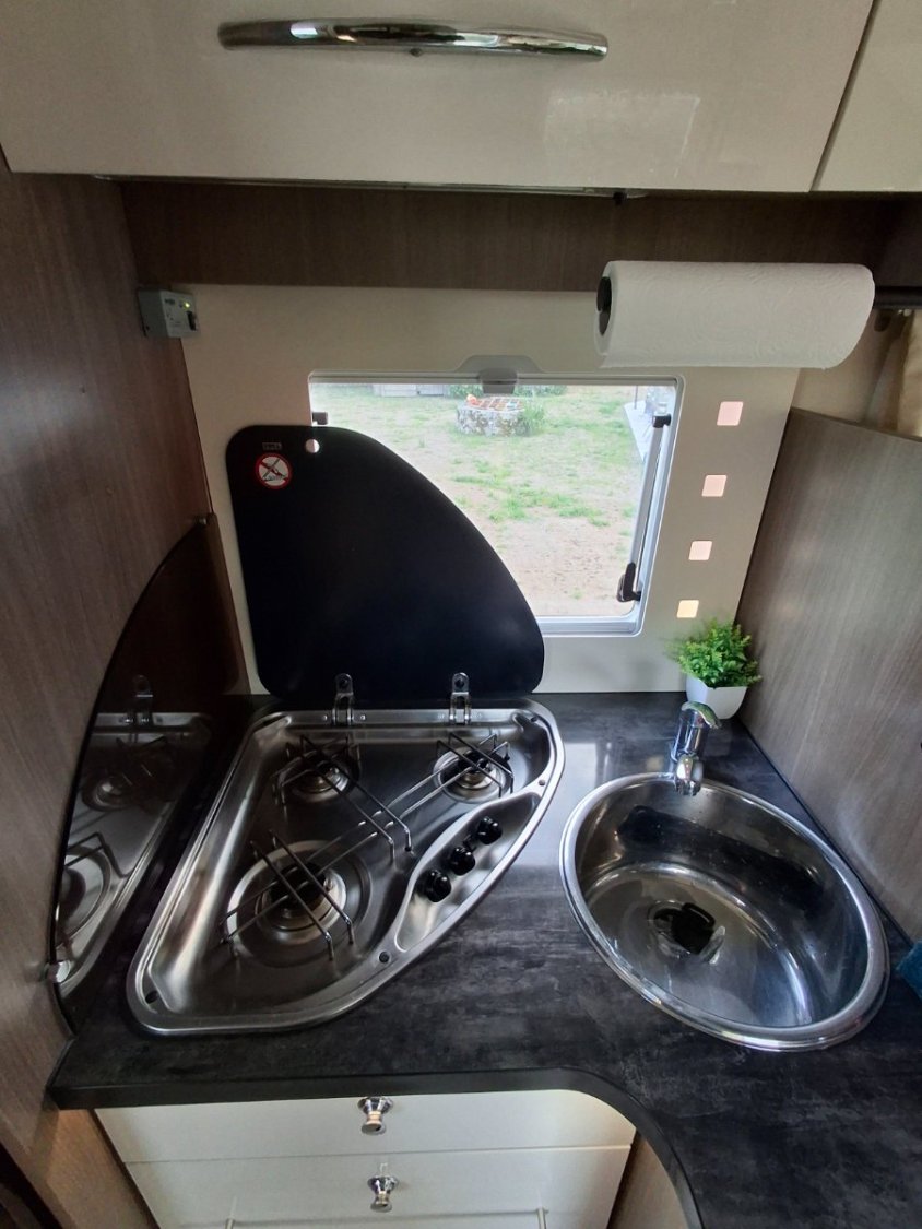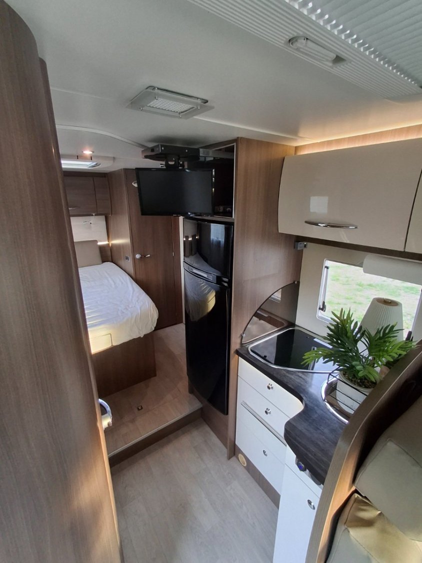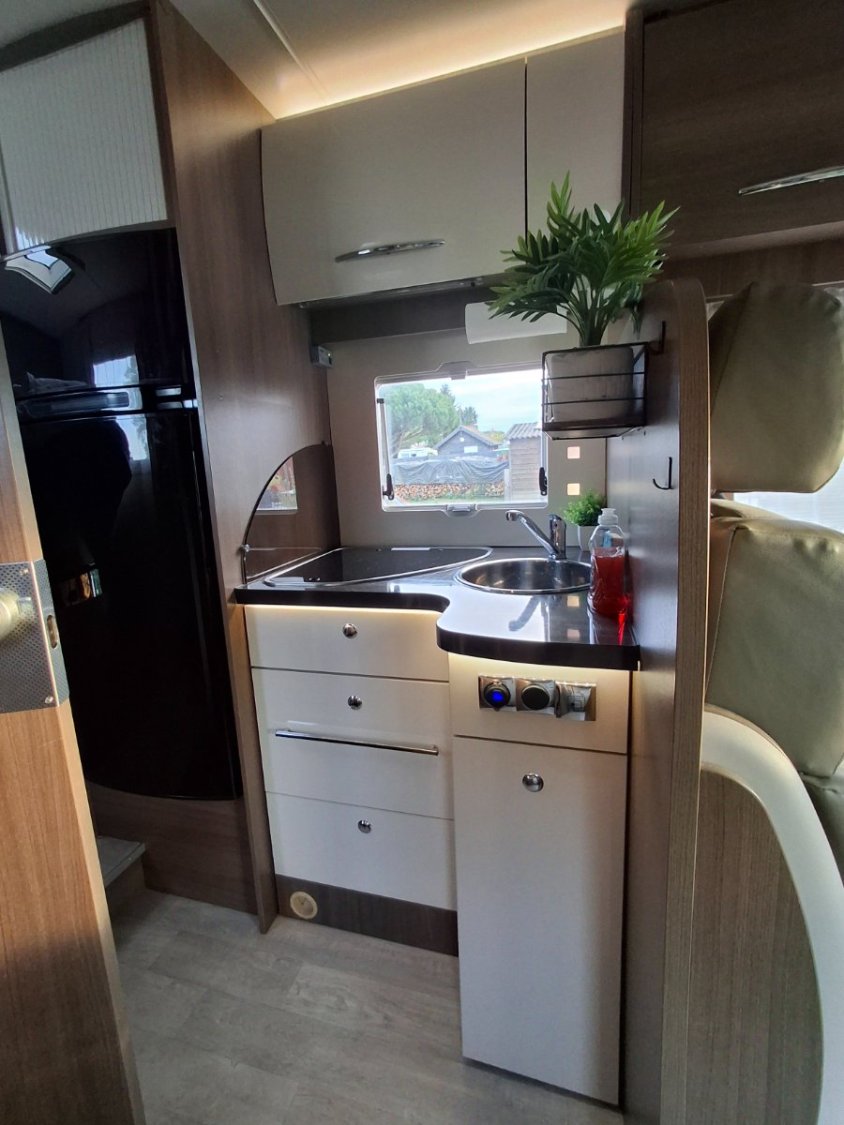 1 Lit cabine au dessus des sièges avant sans gêne pour la table et banquettes.